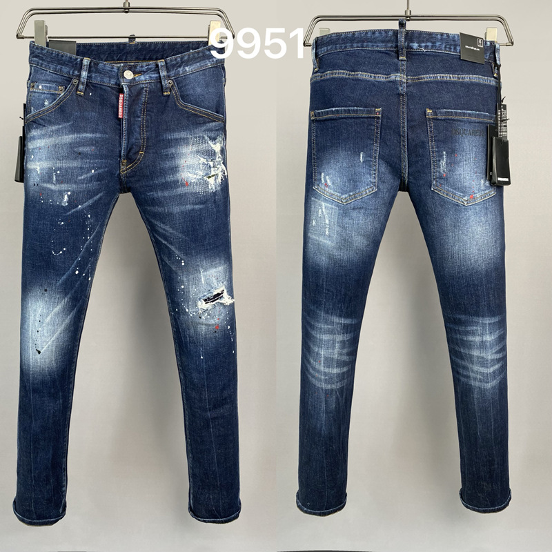 9951 새로운 D2 남성 데님 바지 패치 개성 유럽 역 바람으로 닦은 흰색 작은 직선 발 국경 간 조수 청바지스토어 가기