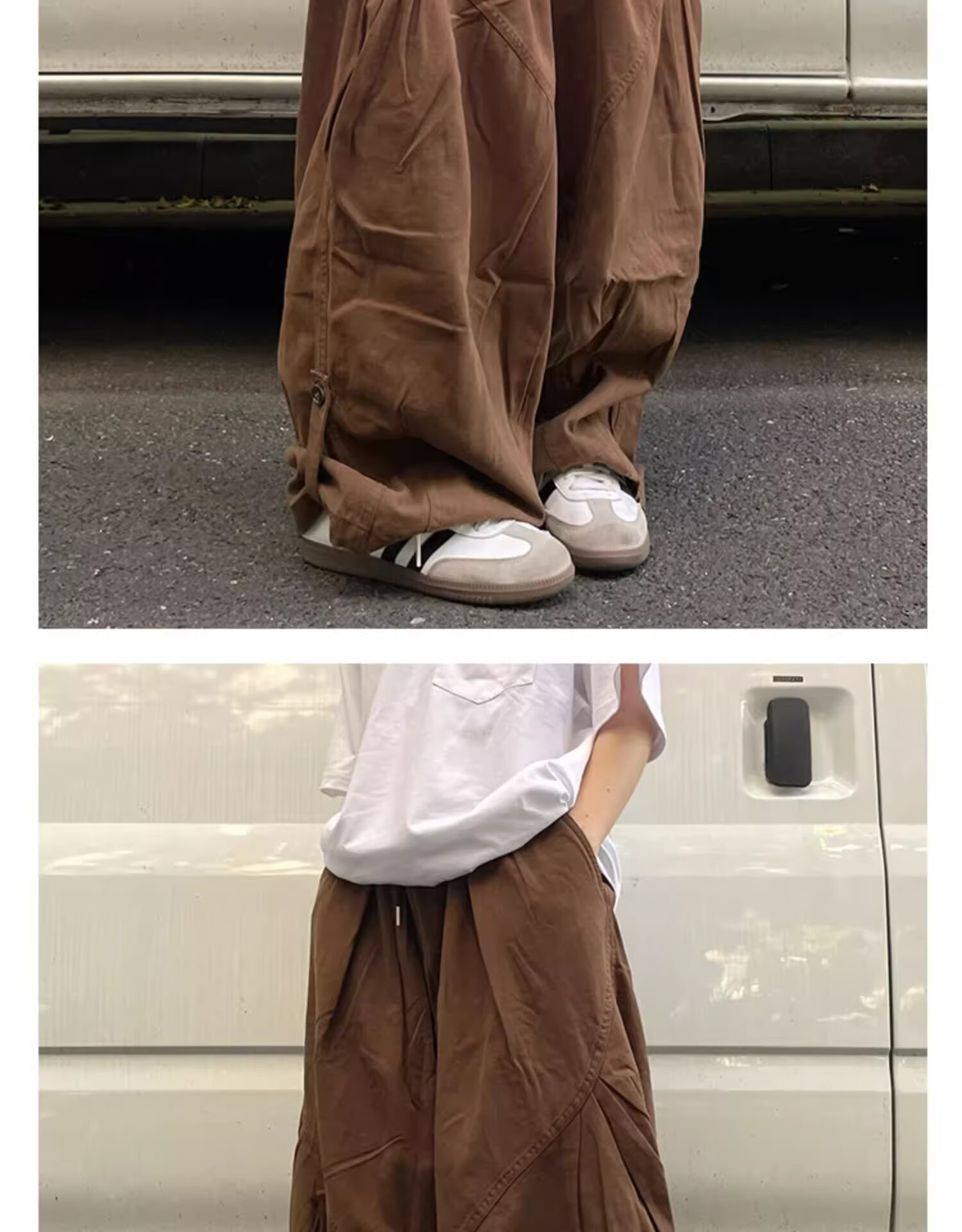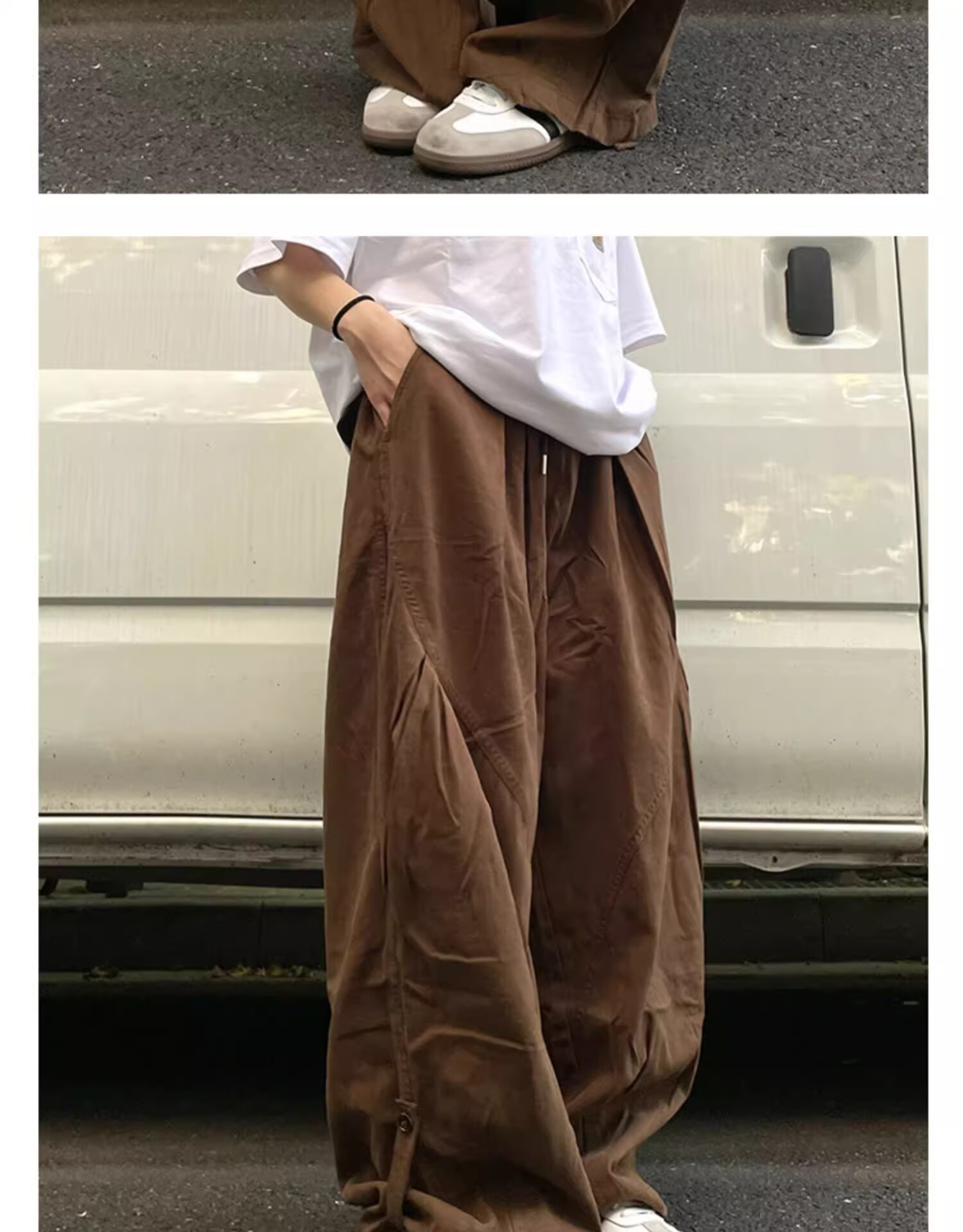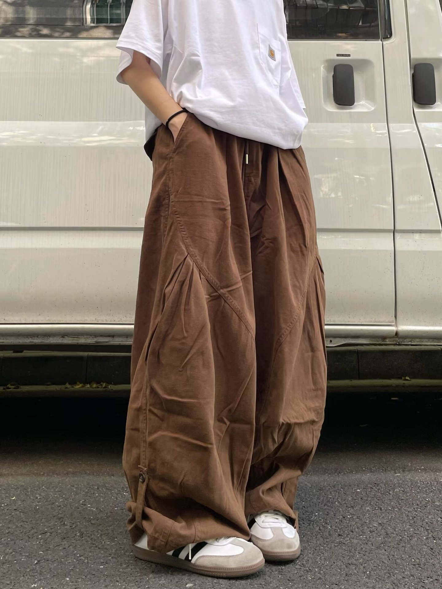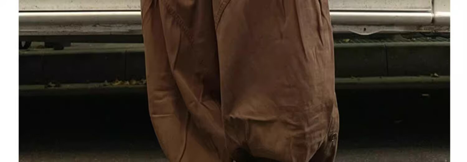 뚱뚱한 형제의 작업복 넓은 다리 바지 남자 홍콩 스타일 복고풍 플러스 사이즈 느슨한 느슨한 허리 긴 바지스토어 가기