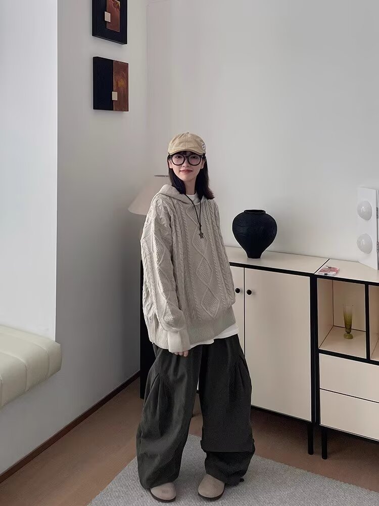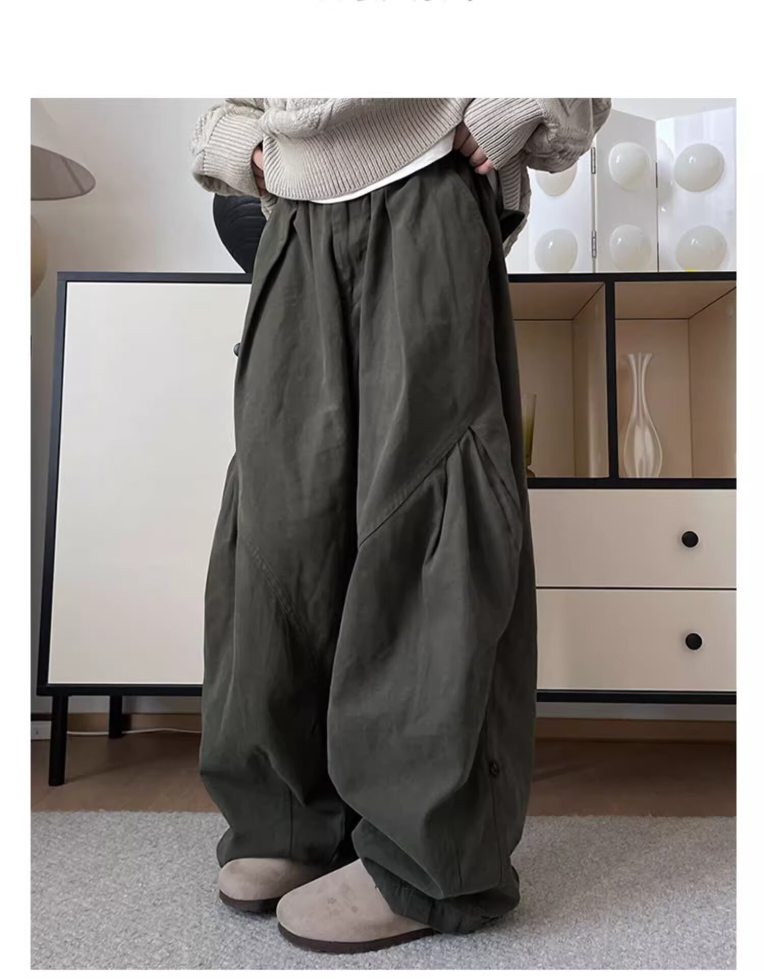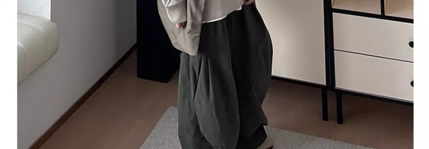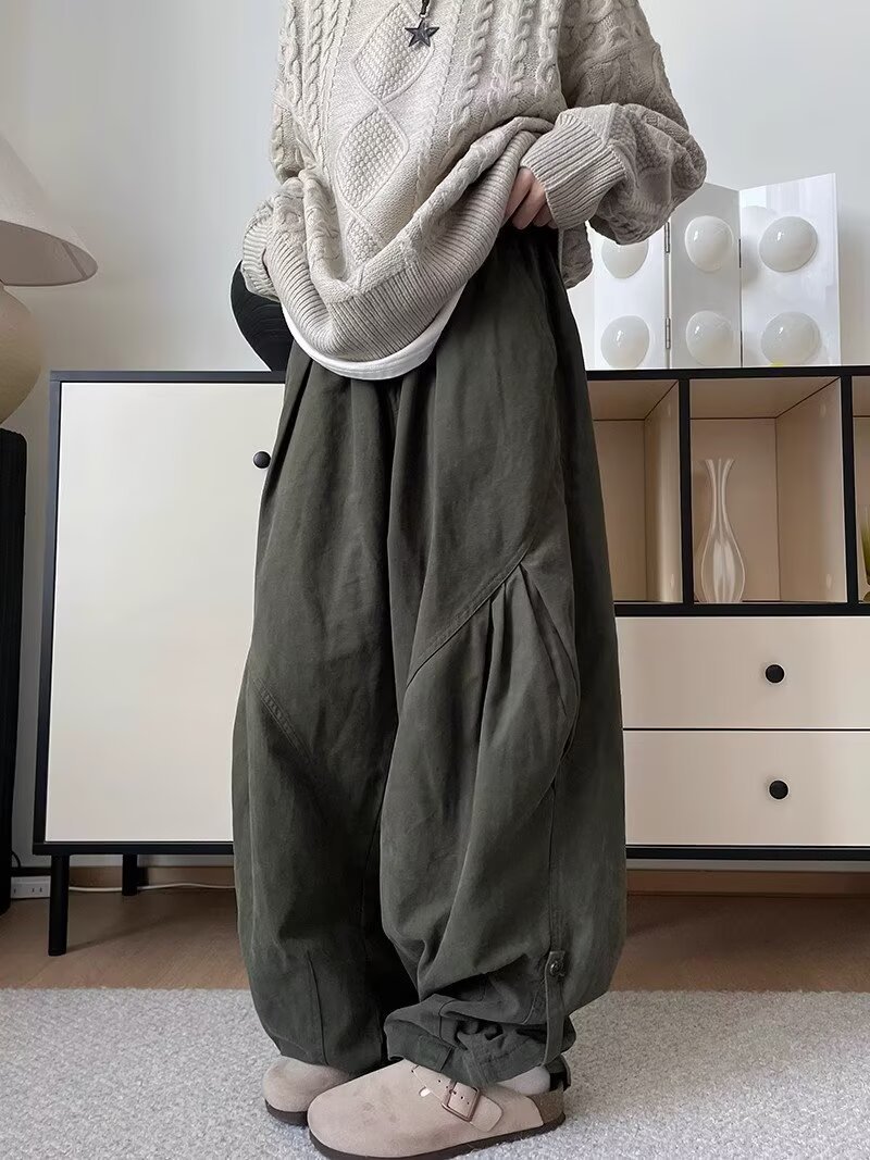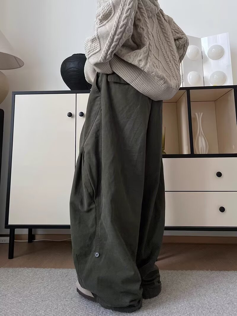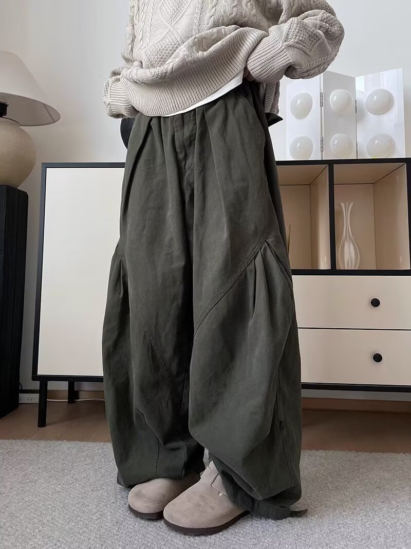뚱뚱한 형제의 작업복 넓은 다리 바지 남자 홍콩 스타일 복고풍 플러스 사이즈 느슨한 느슨한 허리 긴 바지
