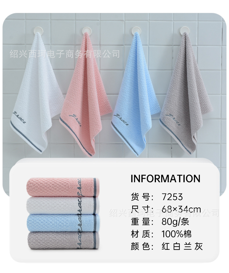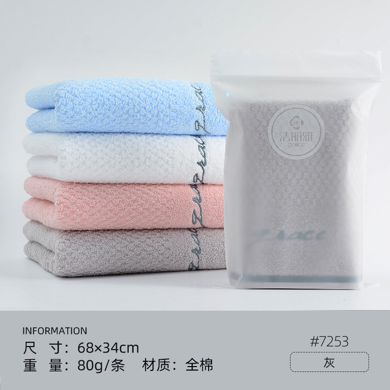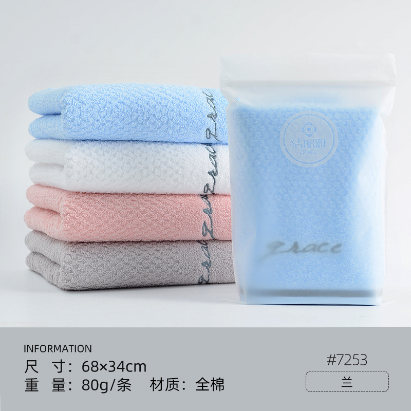 Jielia 단일 가방 면화 부드러운 흡수성 면 가정용 수건 자수 로고 Jielia 수건
