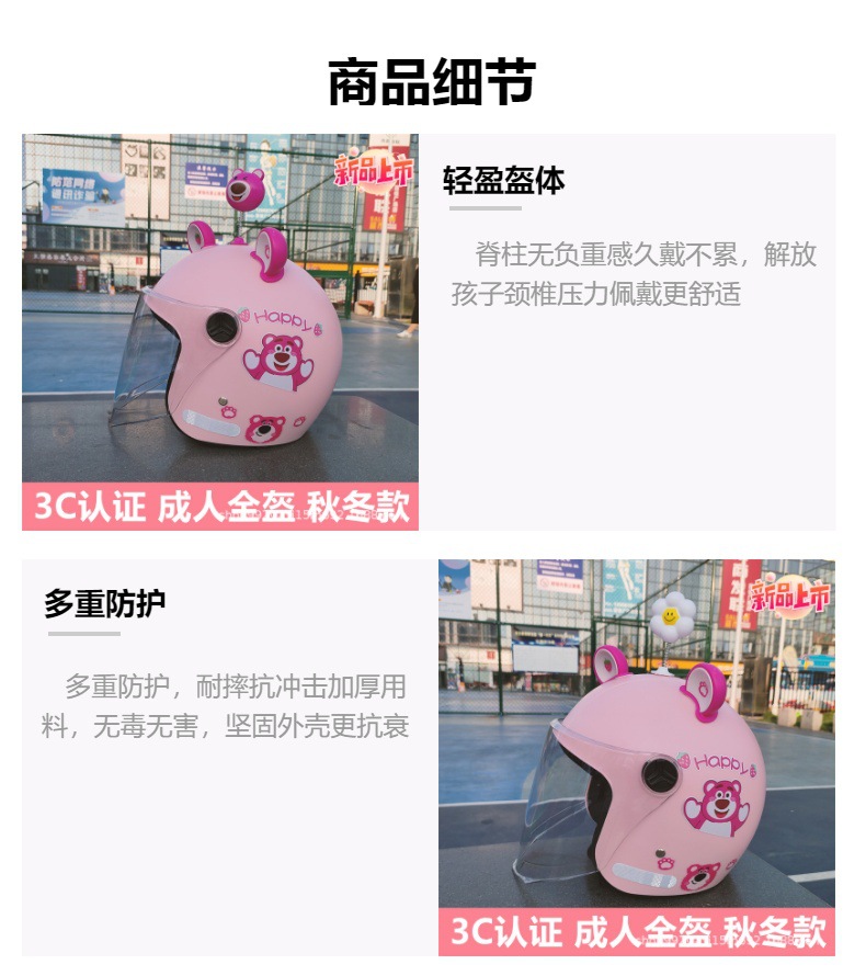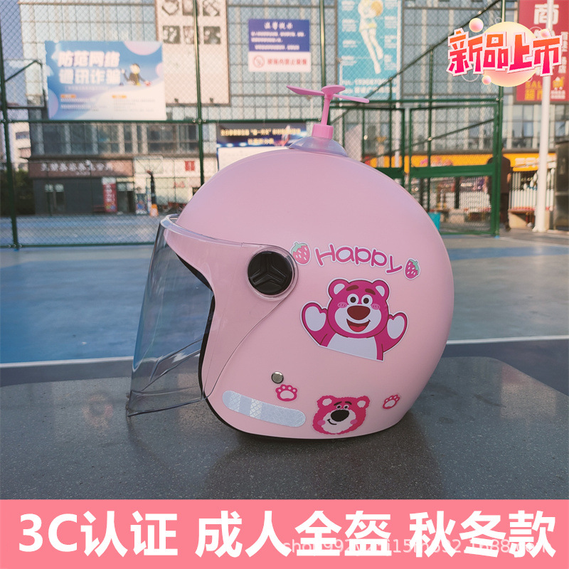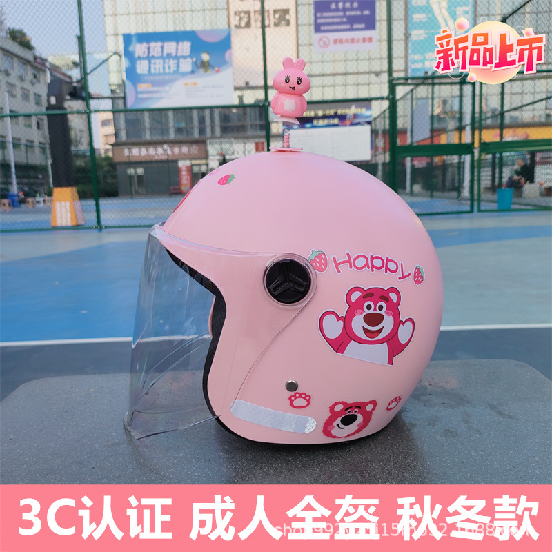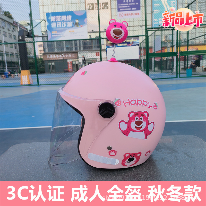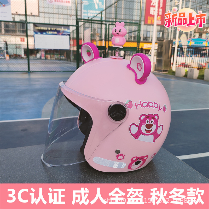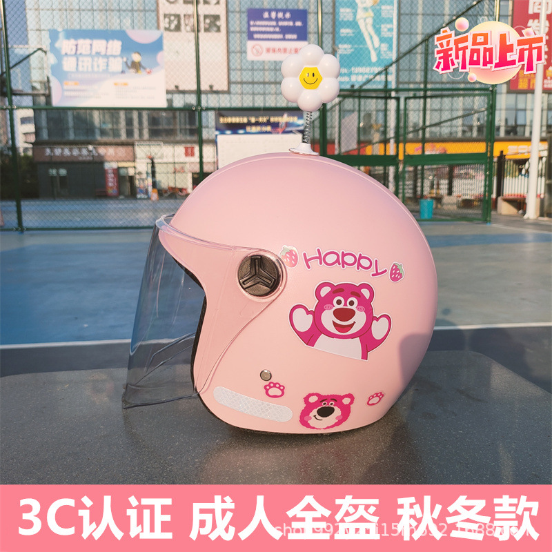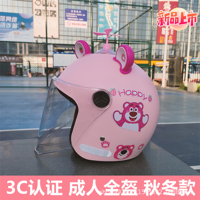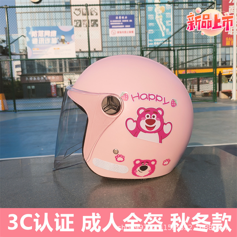 3C 인증 성인 헬멧 전기 자동차 딸기 곰 안전 헬멧 가을과 겨울 따뜻한 오토바이 클래스 빛의 세대스토어 가기