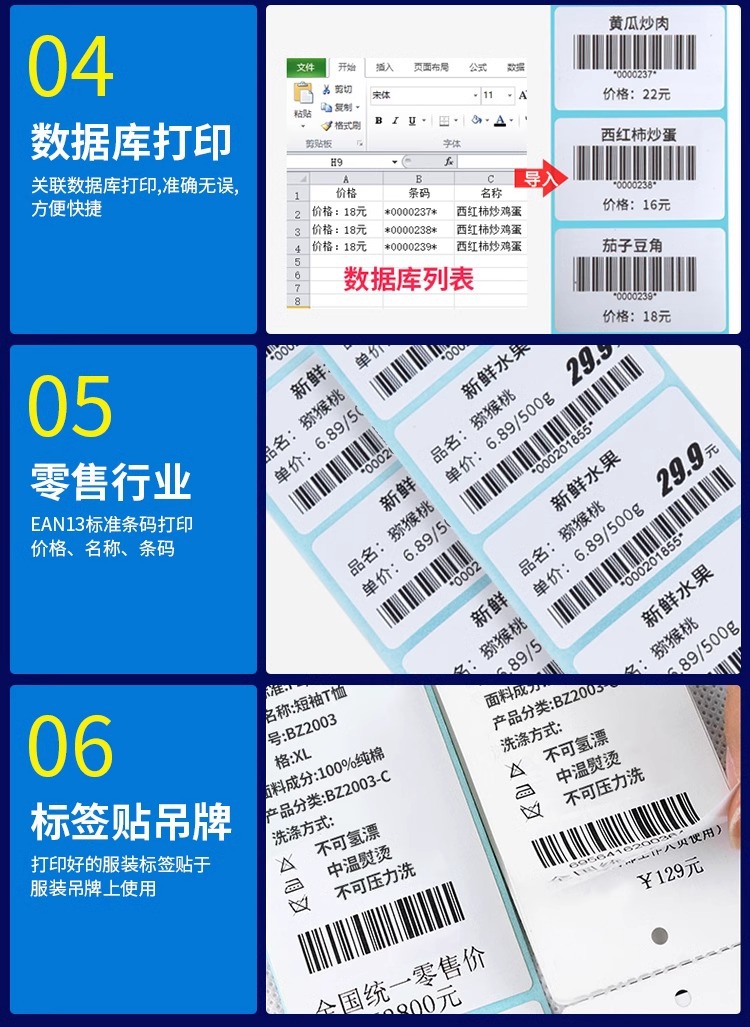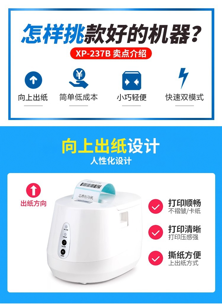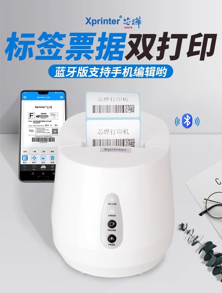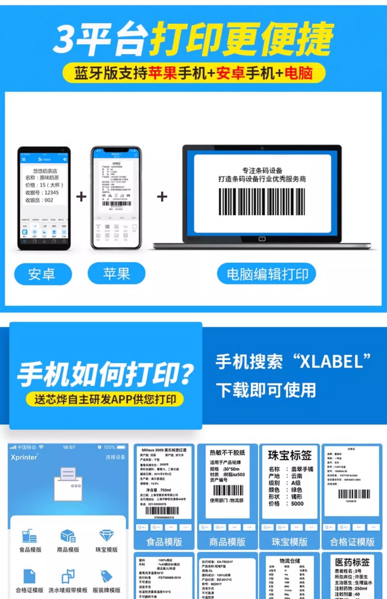 Xinye XP237B 열 바코드 라벨 프린터 보석 의류 슈퍼마켓 커피 우유 차 컵 영수증 블루투스