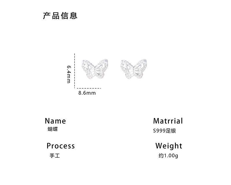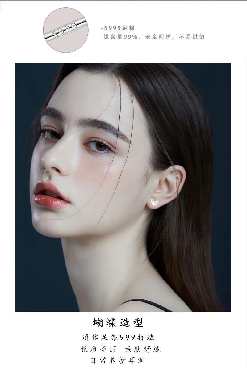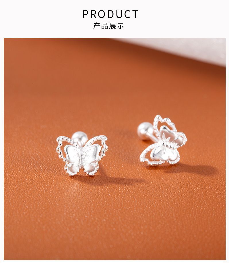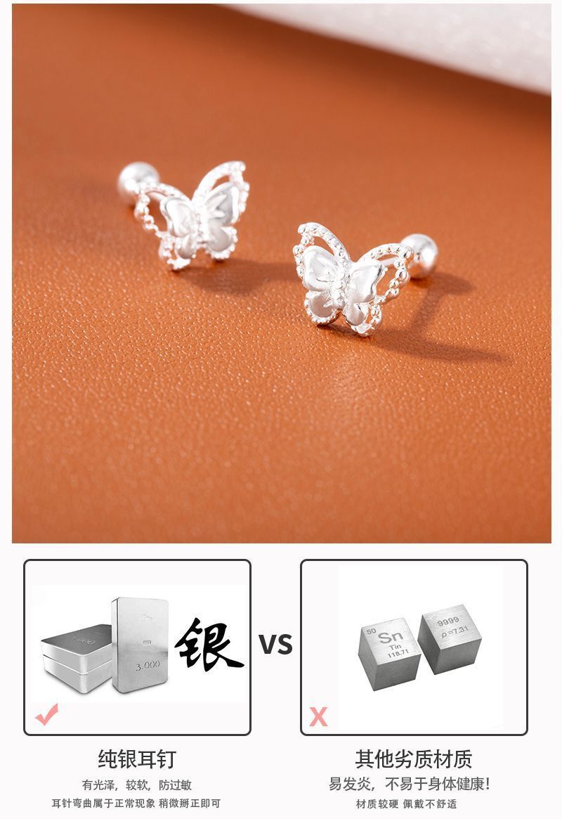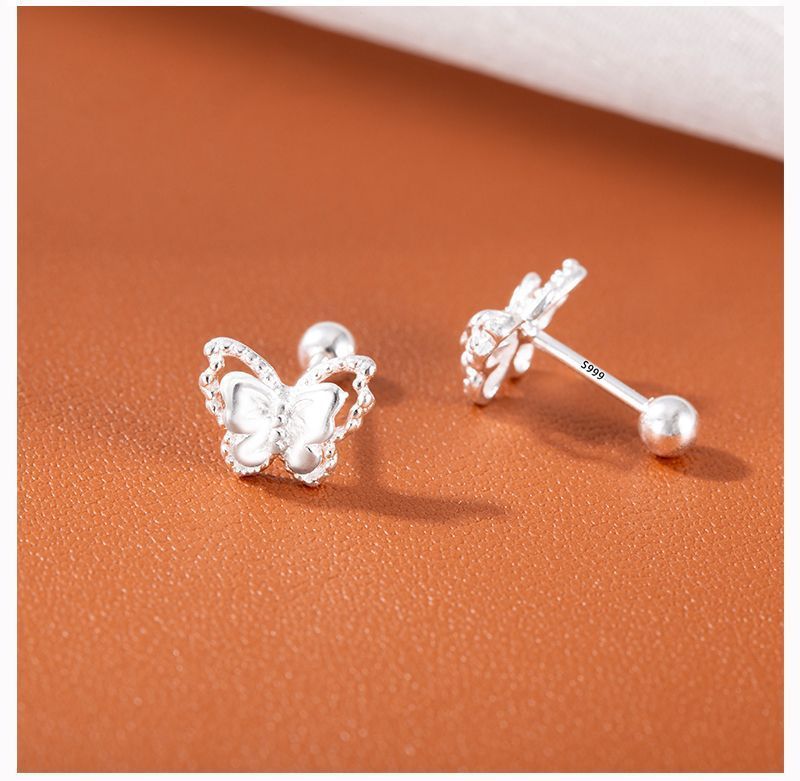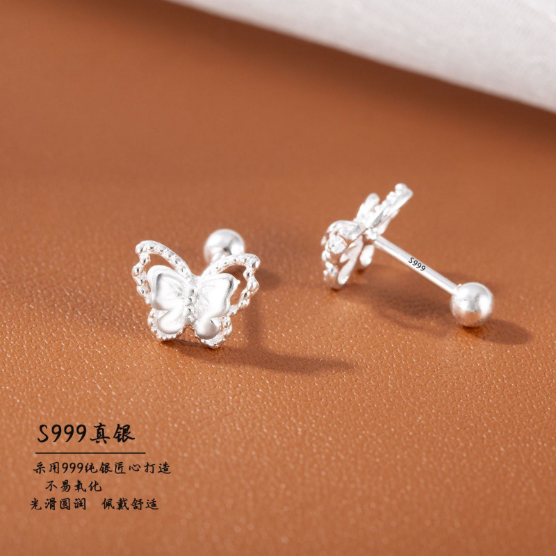 [1898 년 사람들 컬렉션] S999 스털링 실버 귀걸이 나비 풀 Tremella 뼈 네일 안티 알레르기 귀 구멍 작은 나사