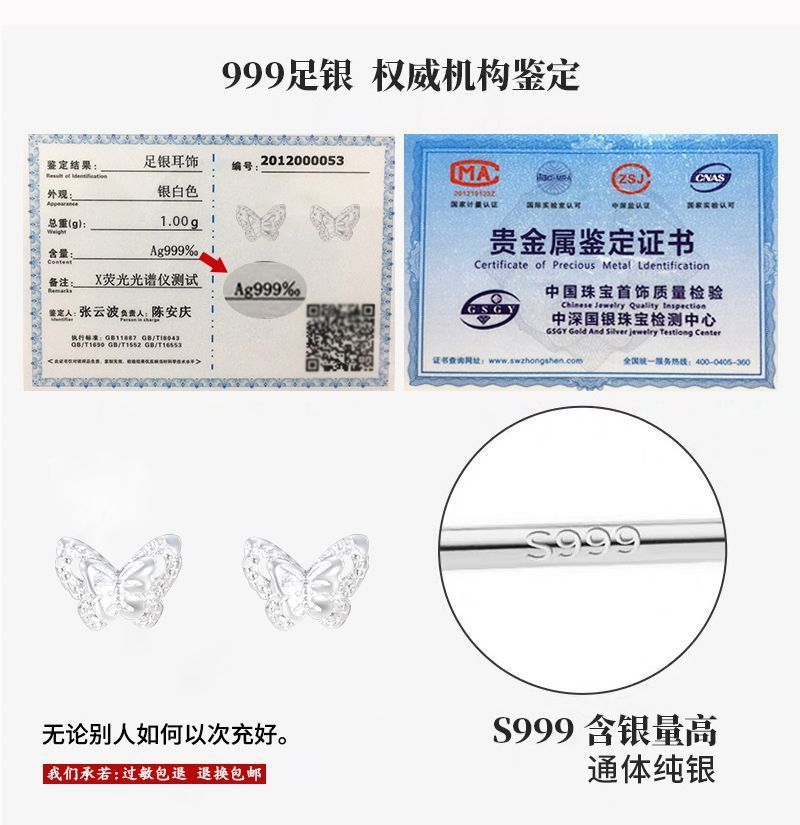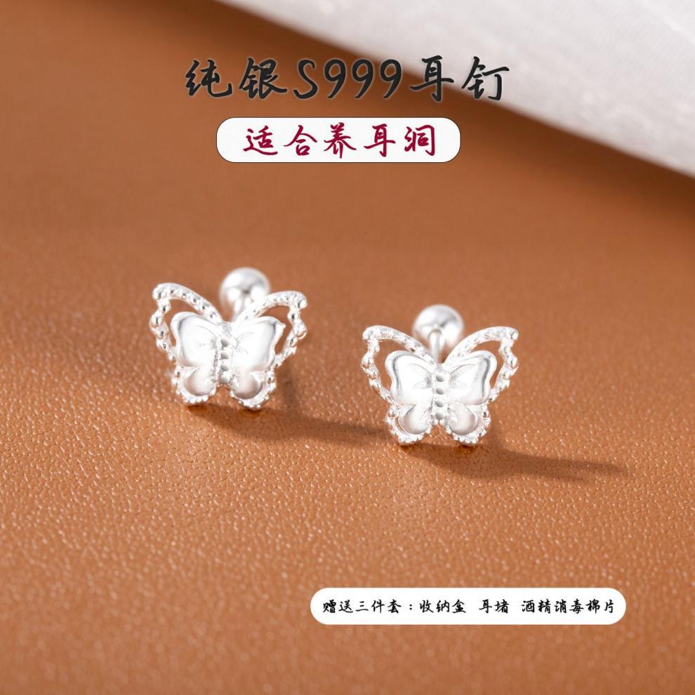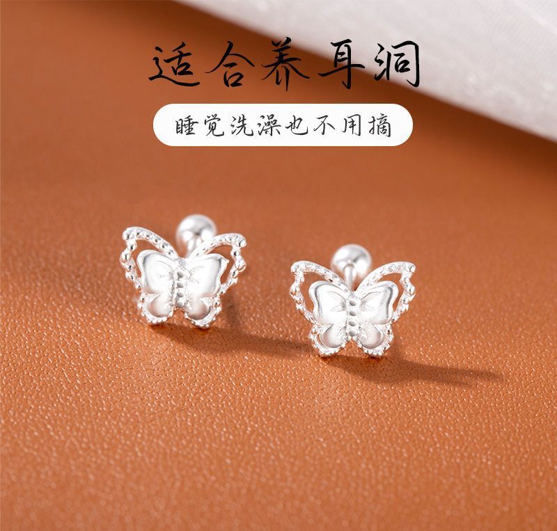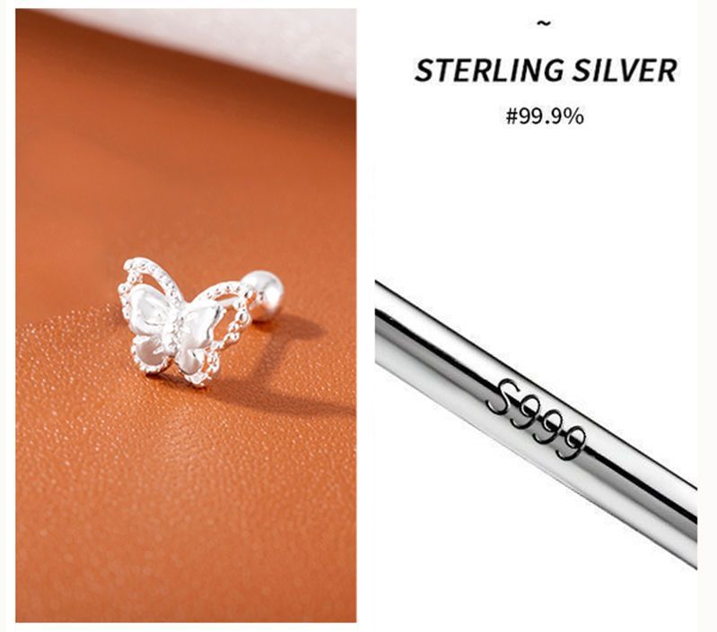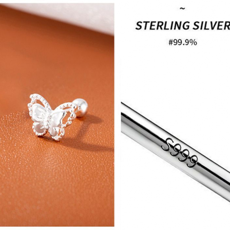 [1898 년 사람들 컬렉션] S999 스털링 실버 귀걸이 나비 풀 Tremella 뼈 네일 안티 알레르기 귀 구멍 작은 나사스토어 가기
