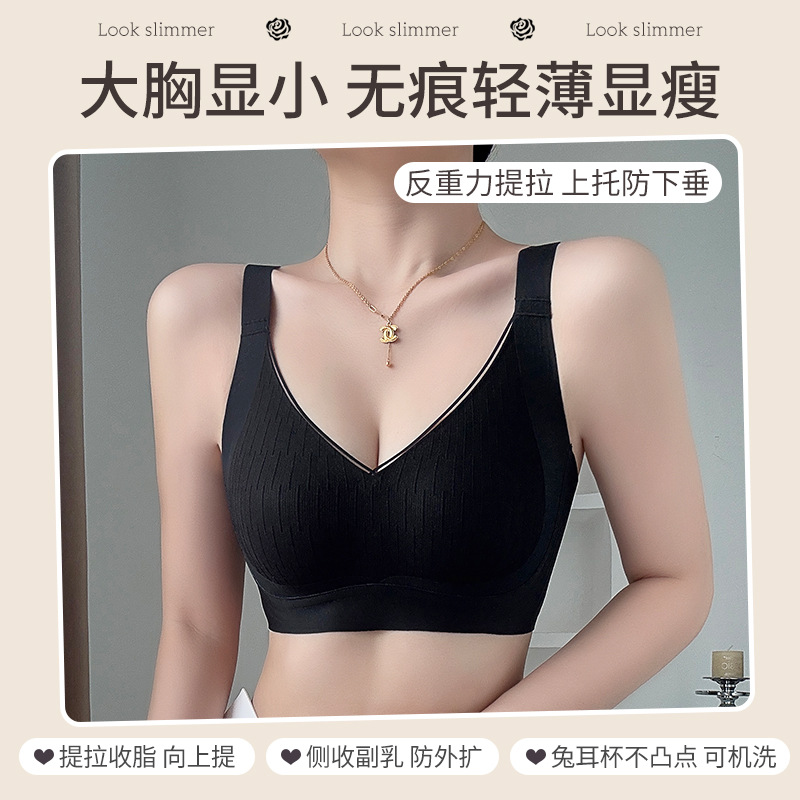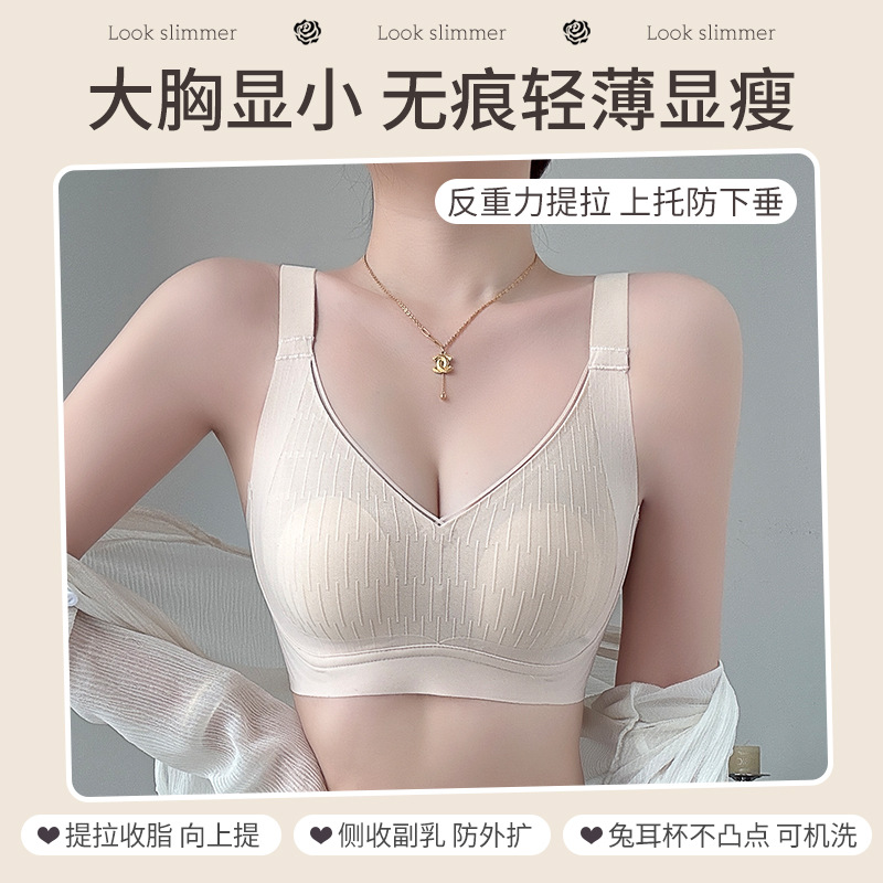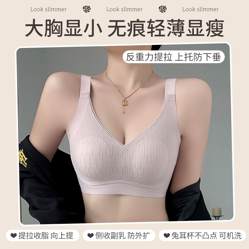 새로운 초박형 대형 가슴 작은 속옷 여성의 원활한 스틸 링 소프트 지원 처짐 방지 브래지어 편안한 통기성 브래지어스토어 가기