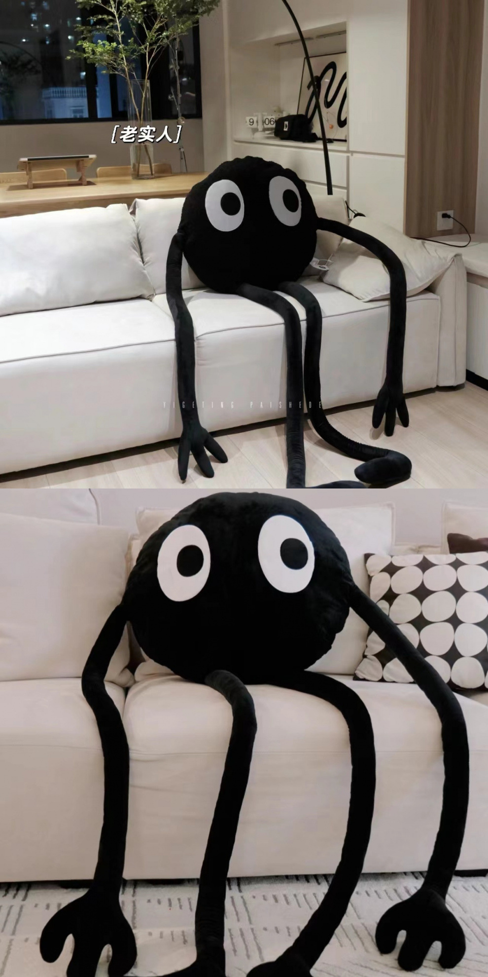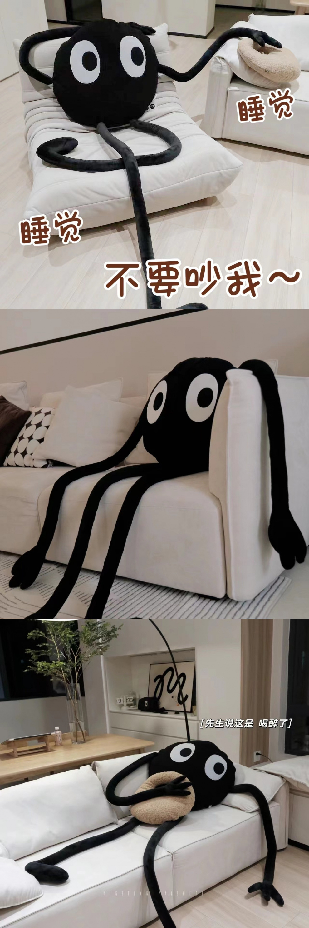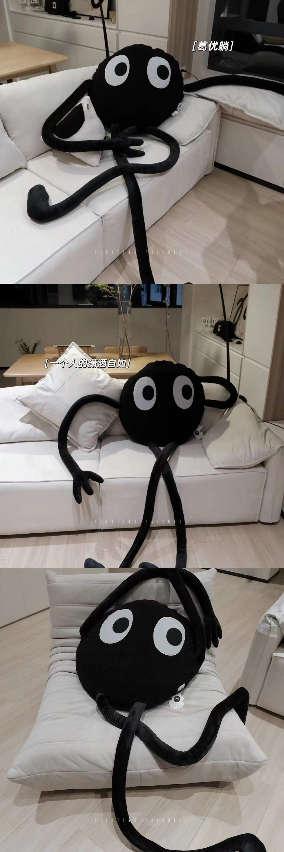 검은 석탄 공 베개 귀여운 석탄 공 괴물 인형 쿠션 베개 봉제 장난감 선물 재미 인형 긴 손과 긴 발스토어 가기