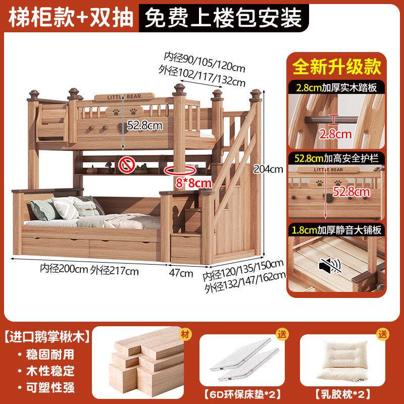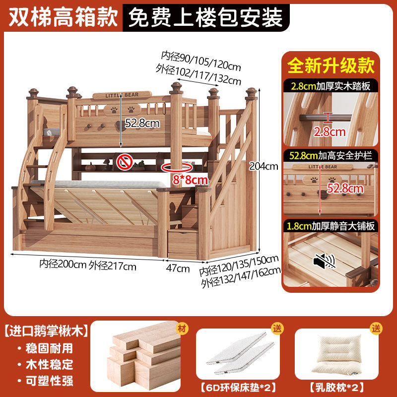 침대 2 층 침대 어린이 침대 침대 침대 풀 솔리드 우드 베드 높고 낮은 침대 Liriodendron 나무 어머니 침대 작은 아파트
