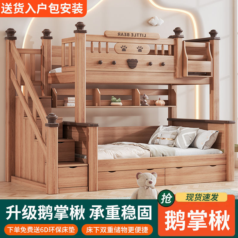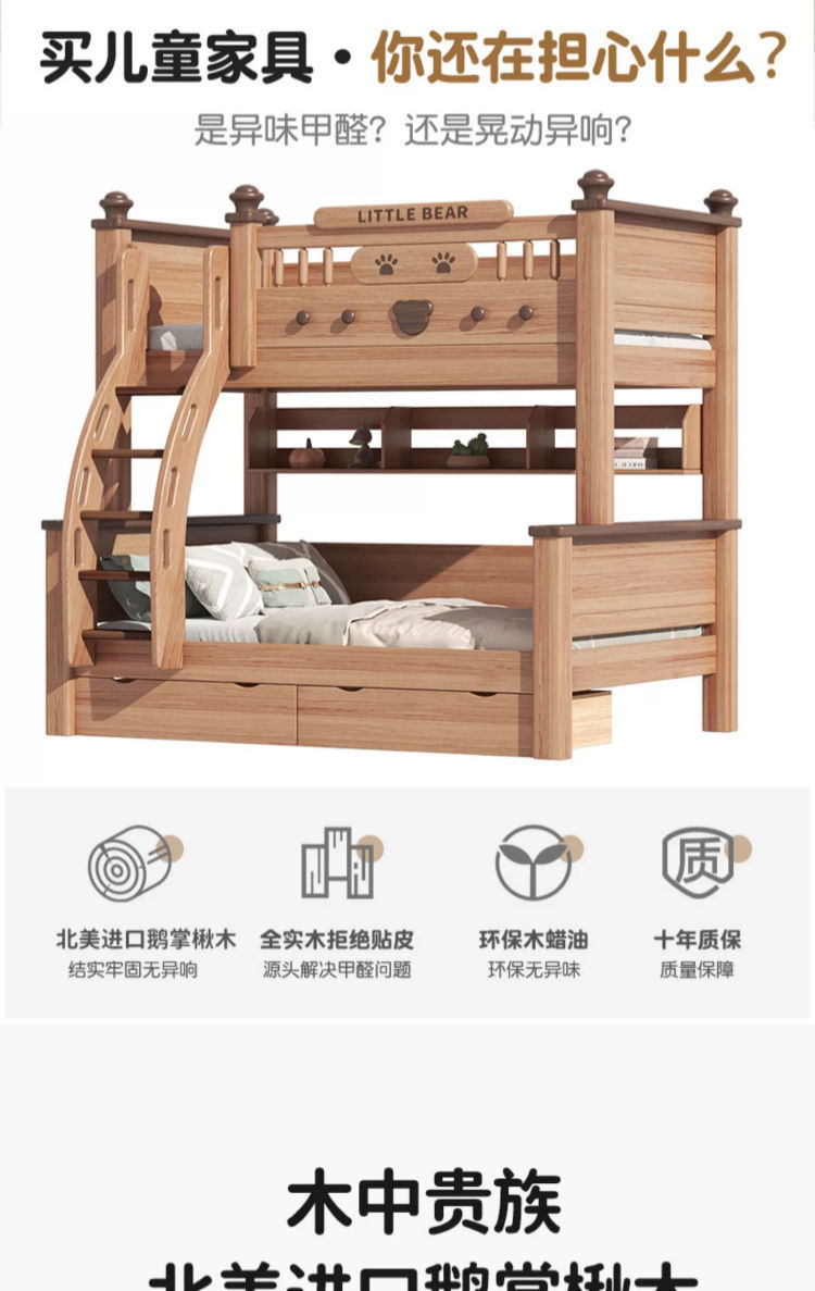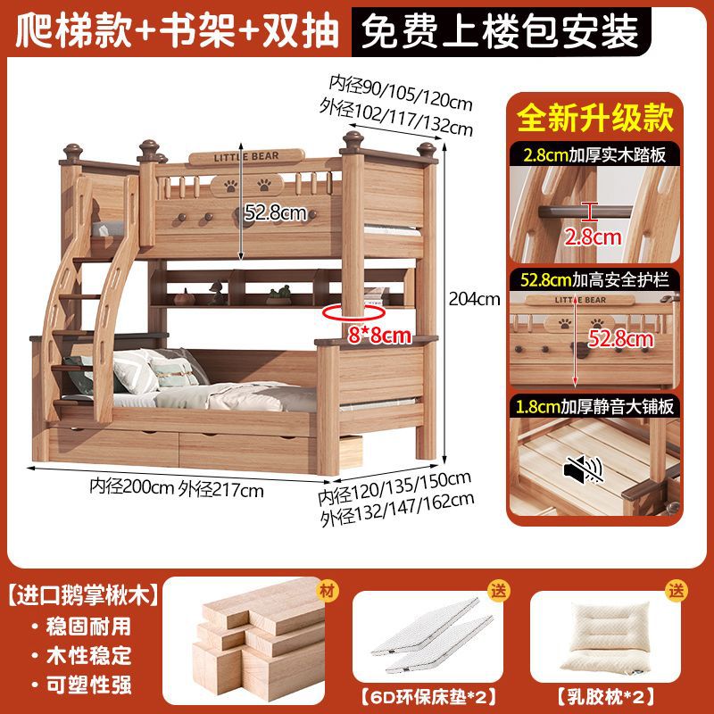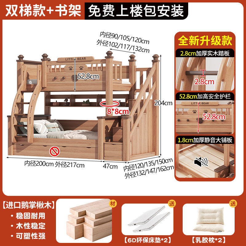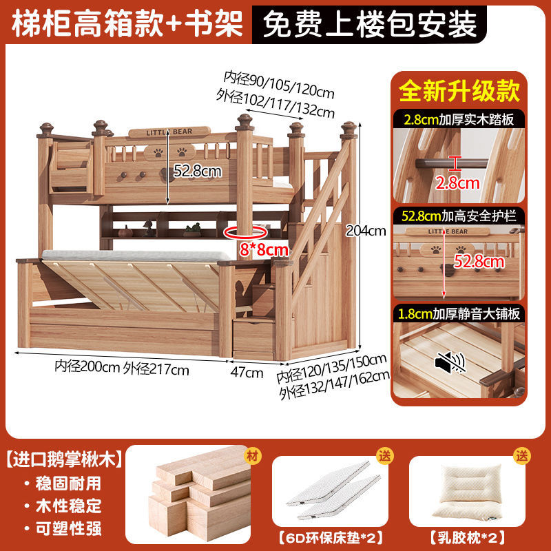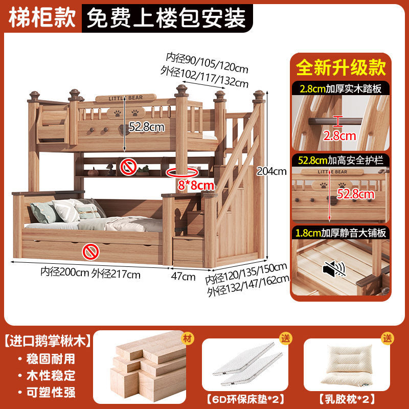 침대 2 층 침대 어린이 침대 침대 침대 풀 솔리드 우드 베드 높고 낮은 침대 Liriodendron 나무 어머니 침대 작은 아파트스토어 가기