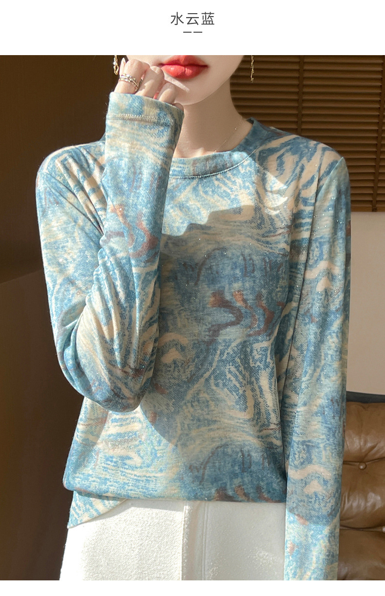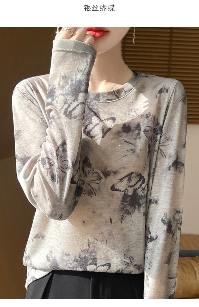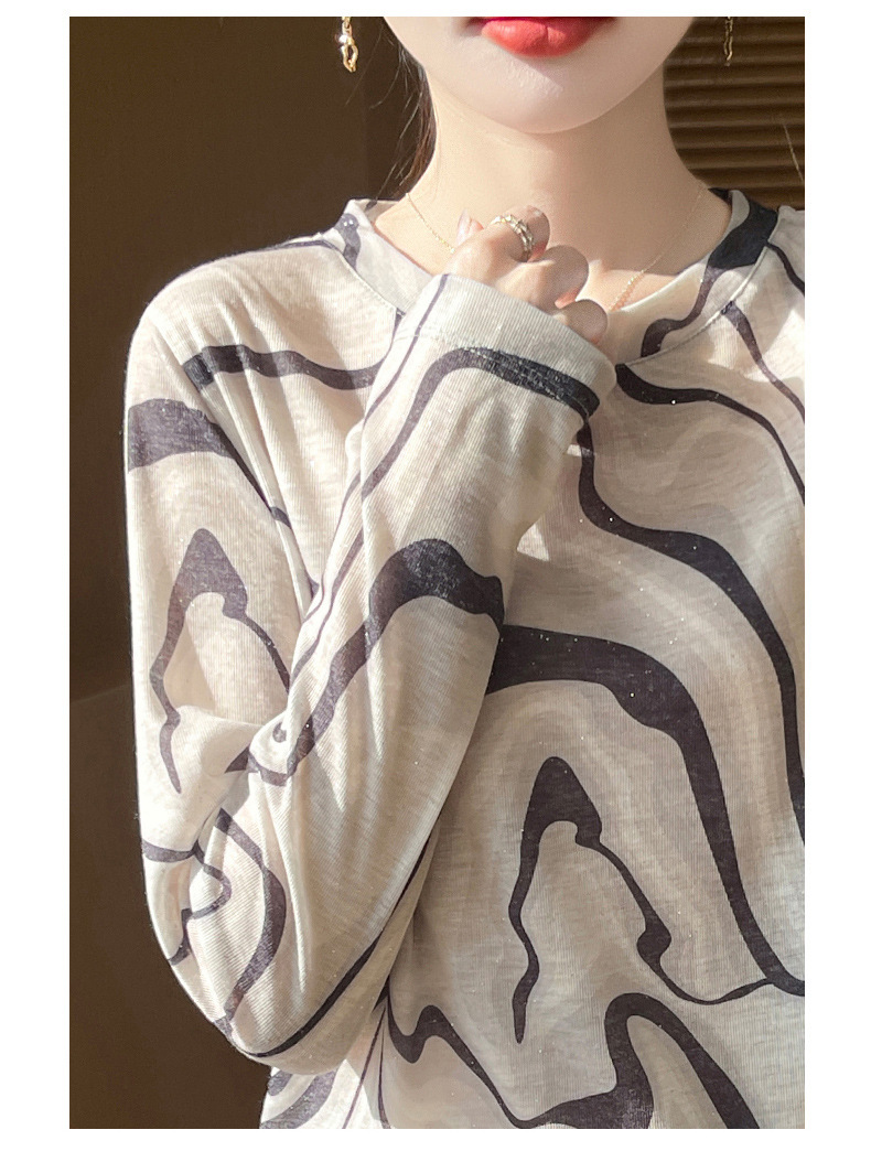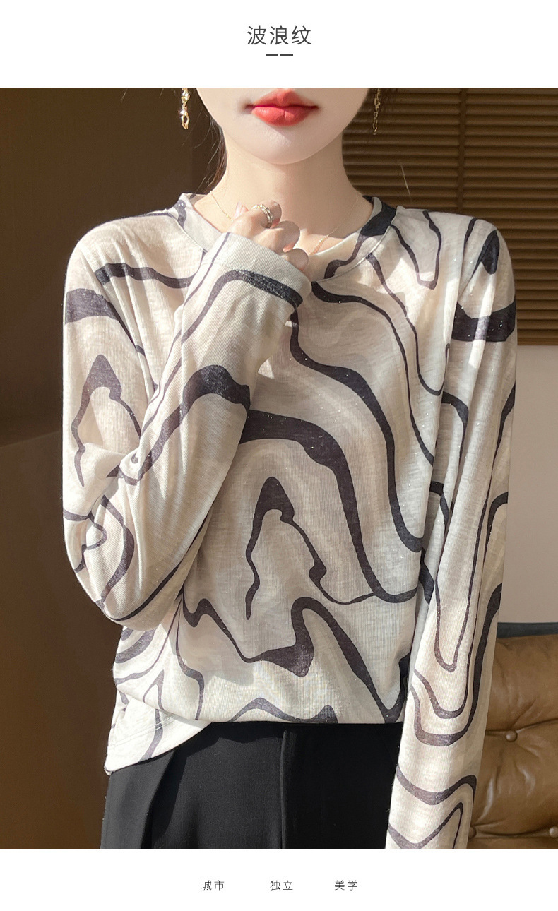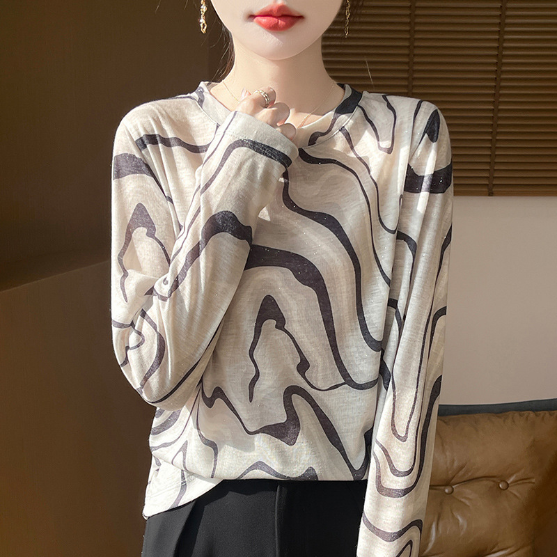 봄과 여름 크루 넥 긴팔 블라우스 여성 슬리밍 한국 스타일 캐주얼 인쇄 스웨터 유행 얇은 베이스 셔츠스토어 가기