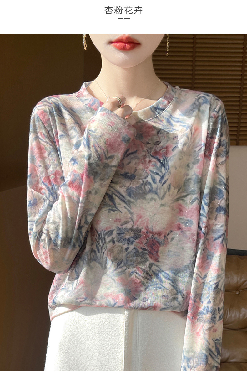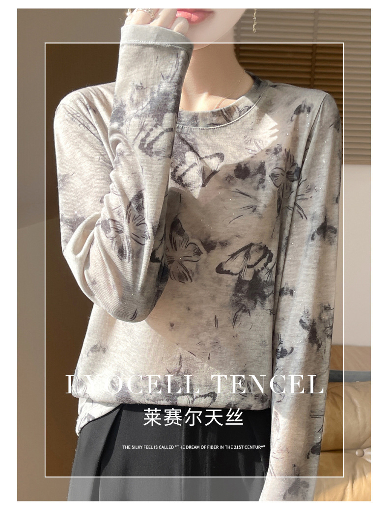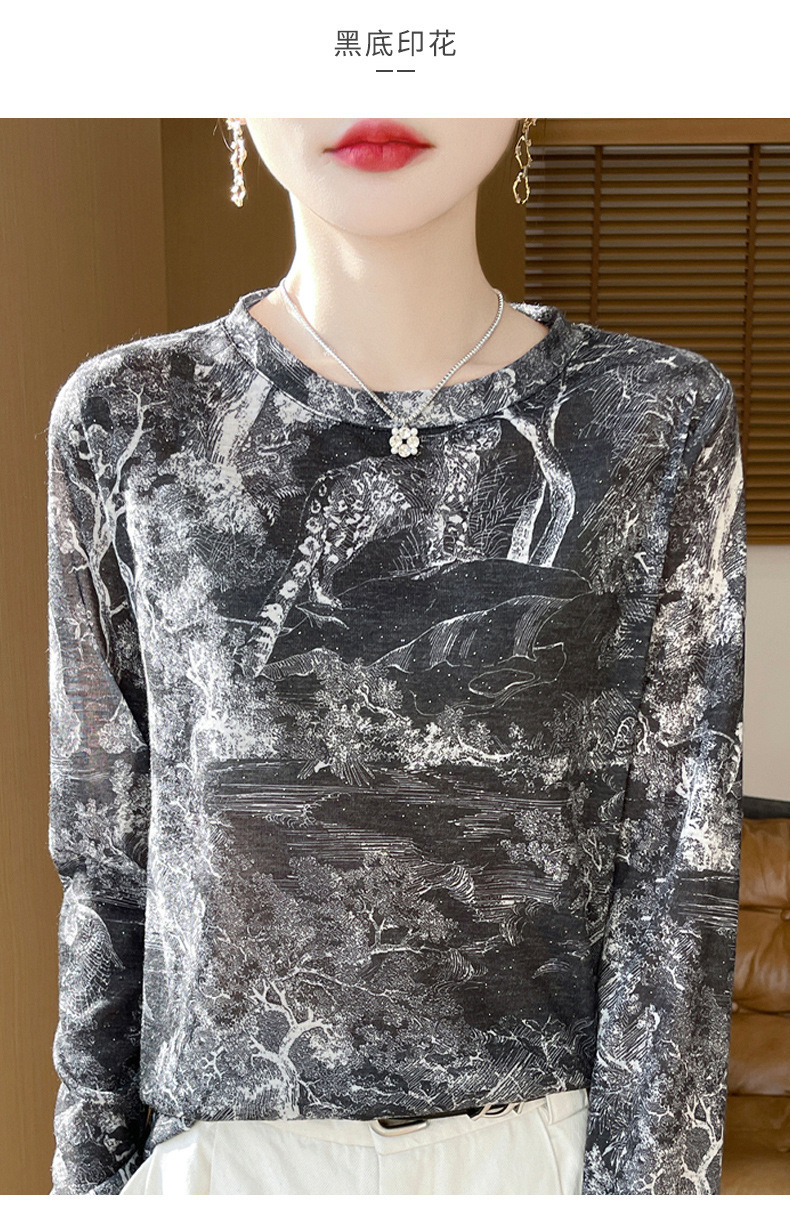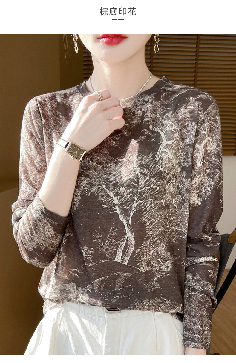 봄과 여름 크루 넥 긴팔 블라우스 여성 슬리밍 한국 스타일 캐주얼 인쇄 스웨터 유행 얇은 베이스 셔츠스토어 가기