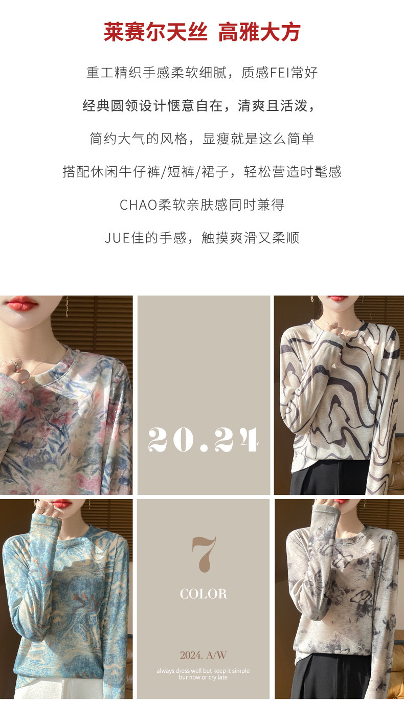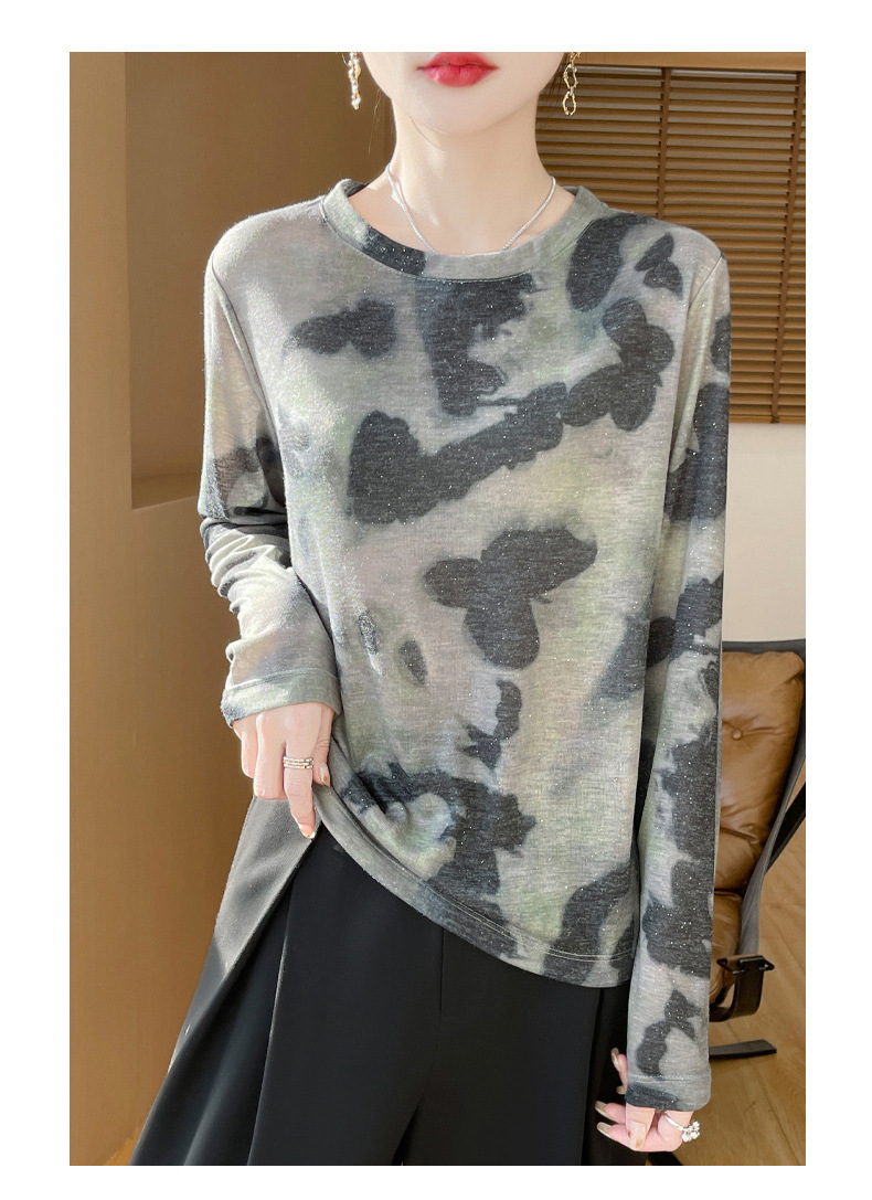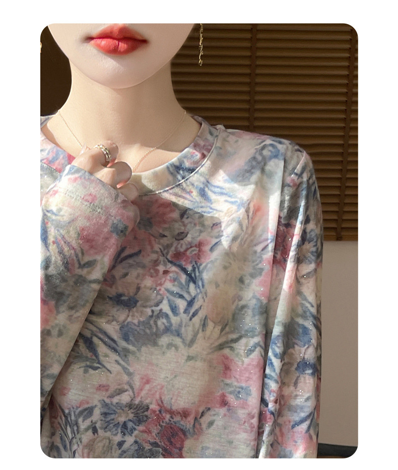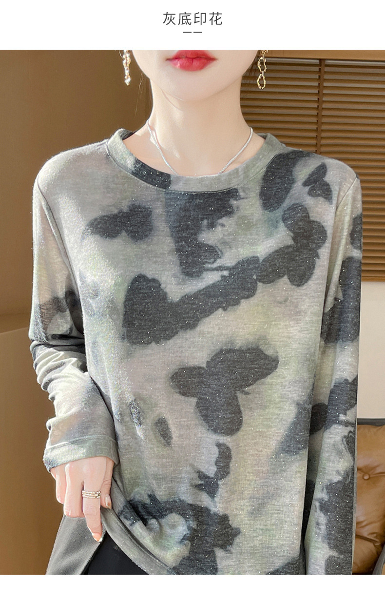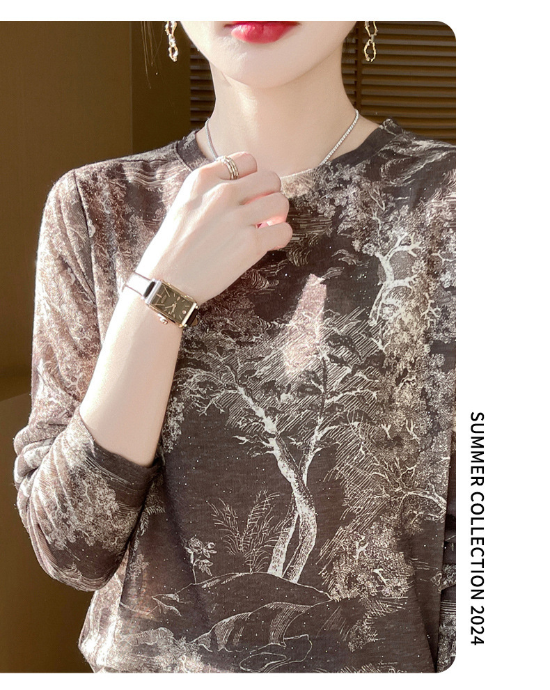 봄과 여름 크루 넥 긴팔 블라우스 여성 슬리밍 한국 스타일 캐주얼 인쇄 스웨터 유행 얇은 베이스 셔츠스토어 가기