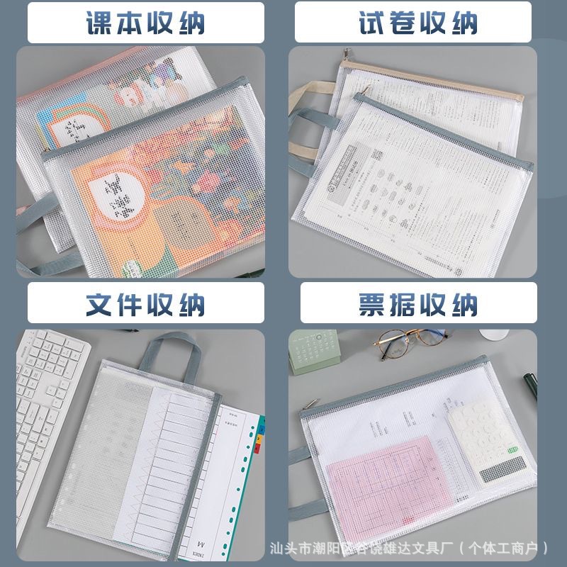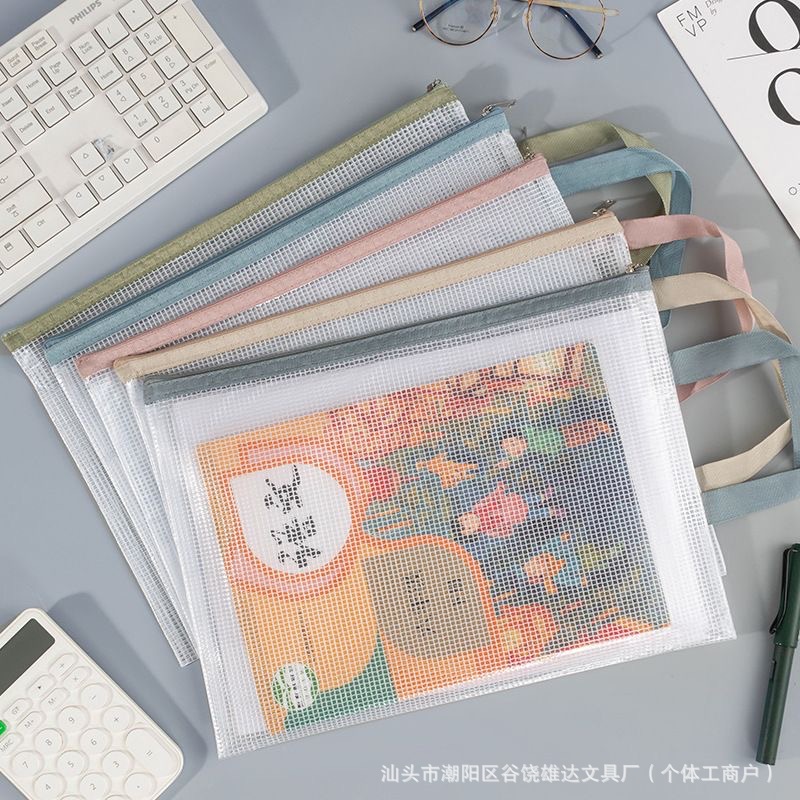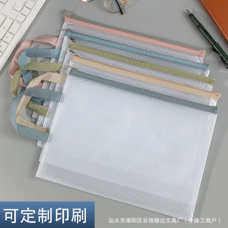 사용자 지정 로고 그리드 문서 가방 휴대용 A4 투명 지퍼 정보 가방 학생 방수 보관 가방 인쇄 가능스토어 가기