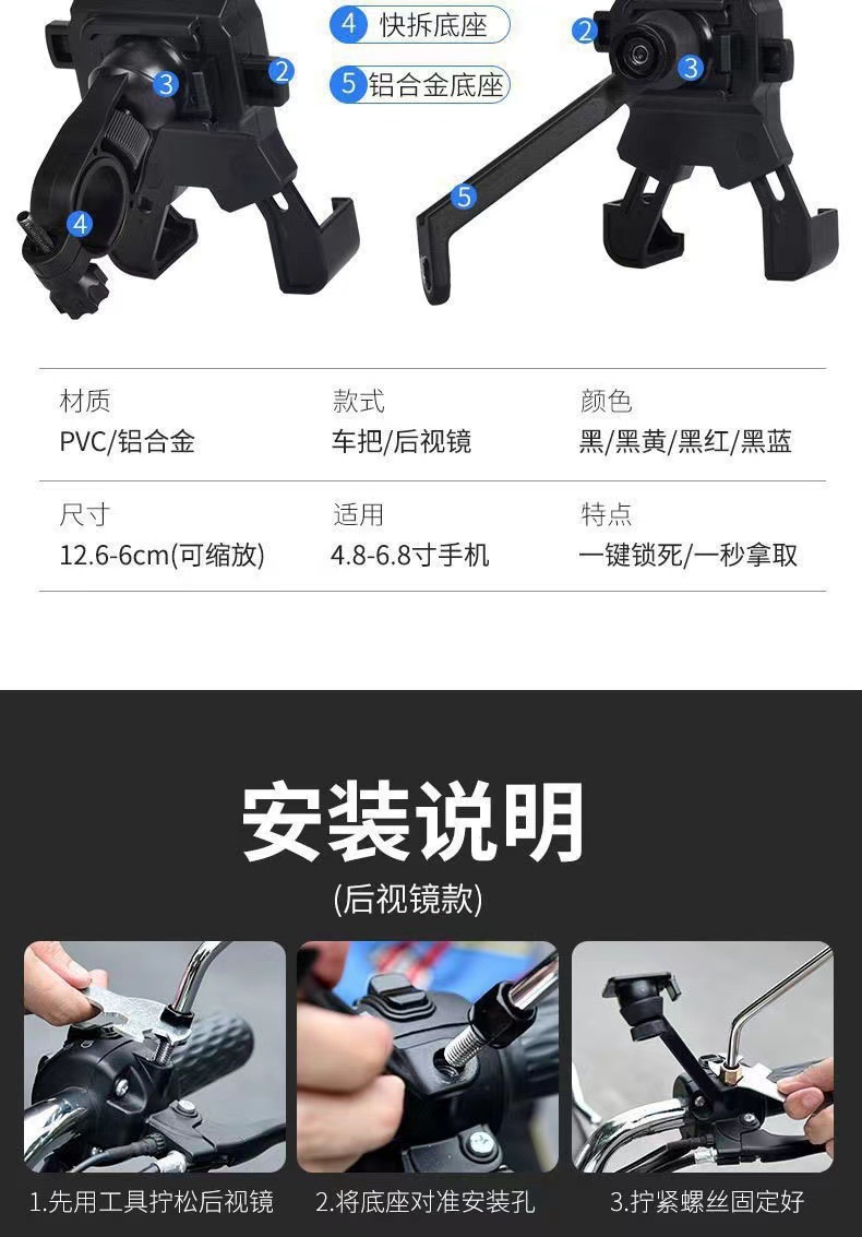 국경 간 전기 자동차 4 발 휴대 전화 홀더 테이크 아웃 라이더 내비게이션 오토바이 자동차 자전거 충격 방지 휴대 전화 홀더