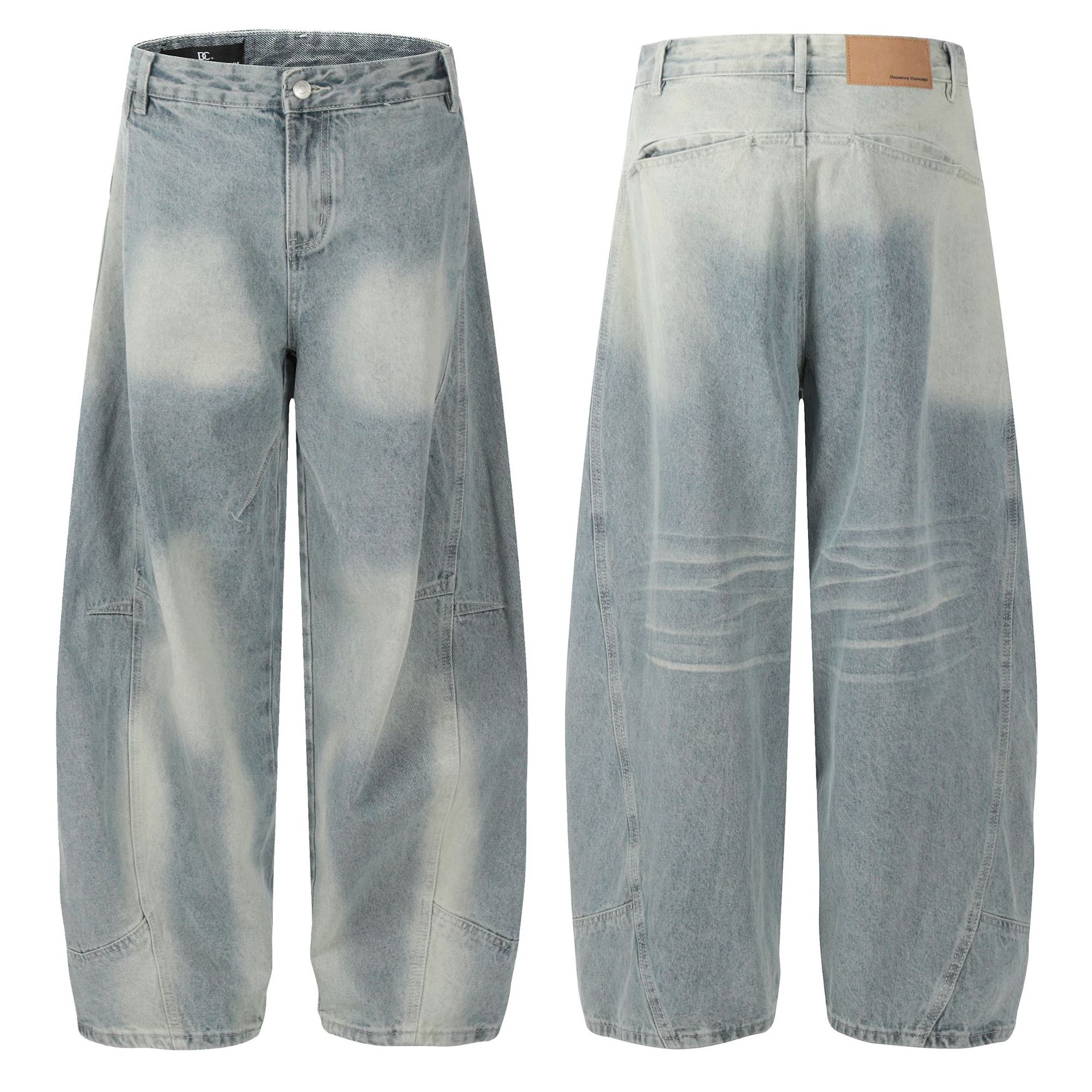 Jiayi 도서관 남자 2025 새로운 미국 하이 스트리트 곡선 시미터 세척 청바지 남녀 바이브 와이드 레그 바지스토어 가기