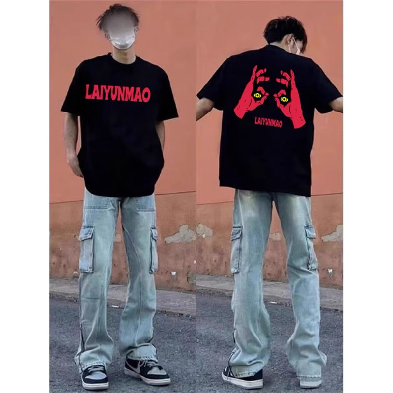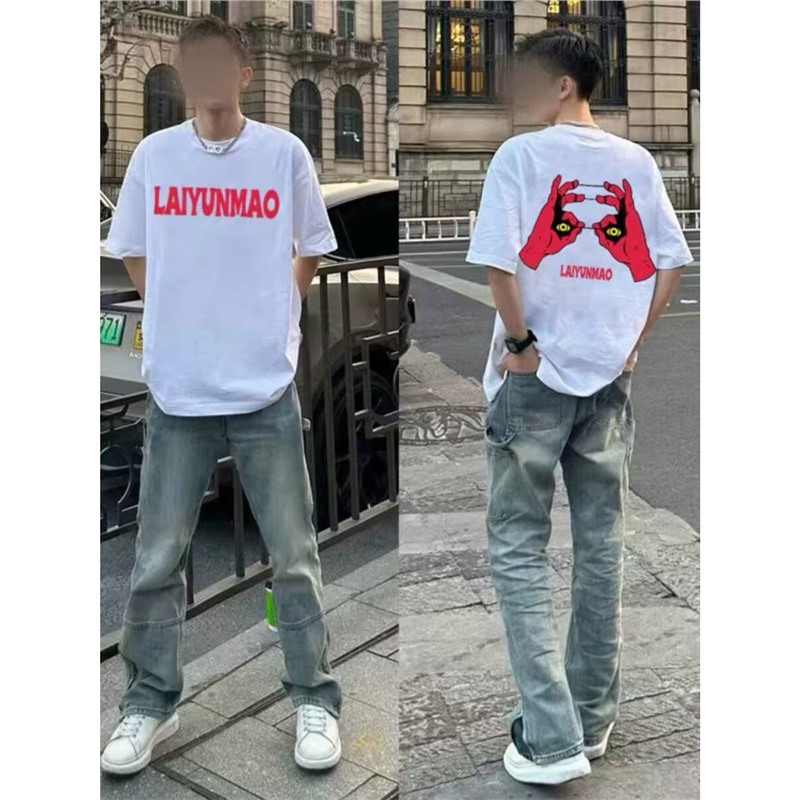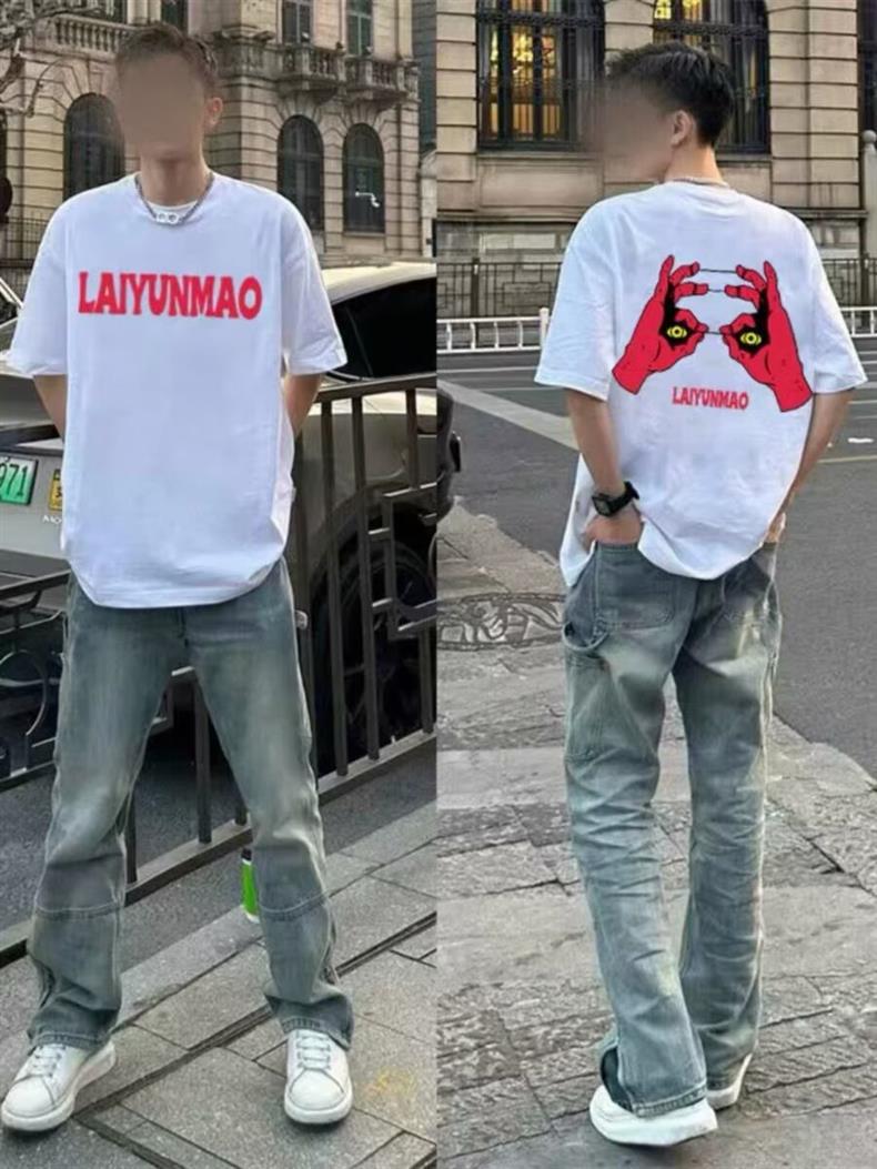 미국 스타일 짧은 소매 티셔츠 남성 유행 브랜드 여름 느슨한 5 점 슬리브 2025 새로운 인터넷 연예인 세련된 Ins 간단한 인쇄스토어 가기