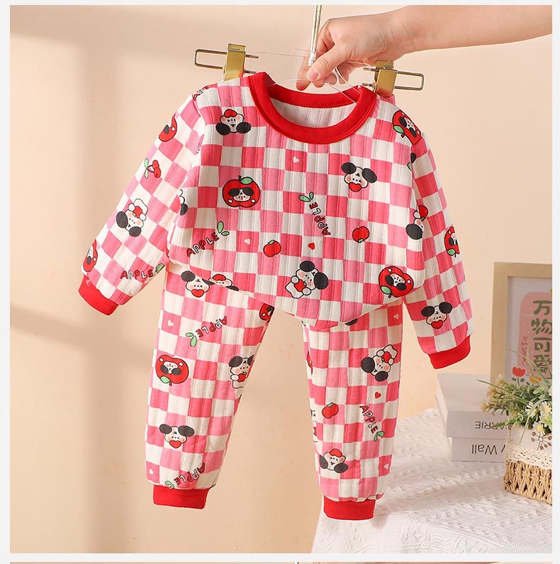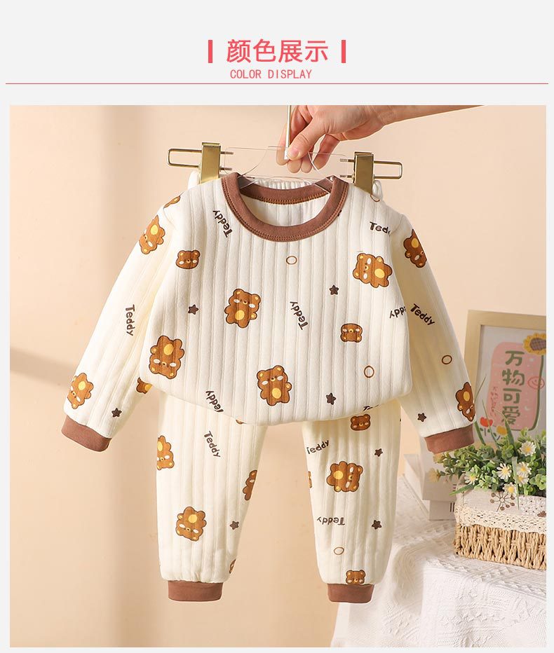 가을 겨울 신상 아동용 누빔 보온 내의 세트, 3중 보온 두꺼운 남아 여아 가을옷 가을바지 세트스토어 가기