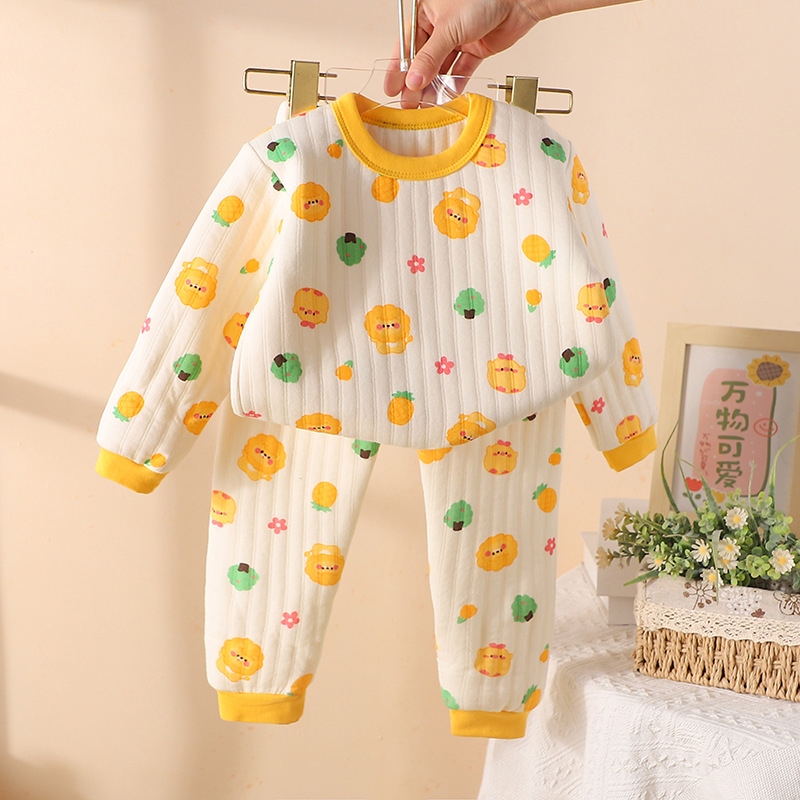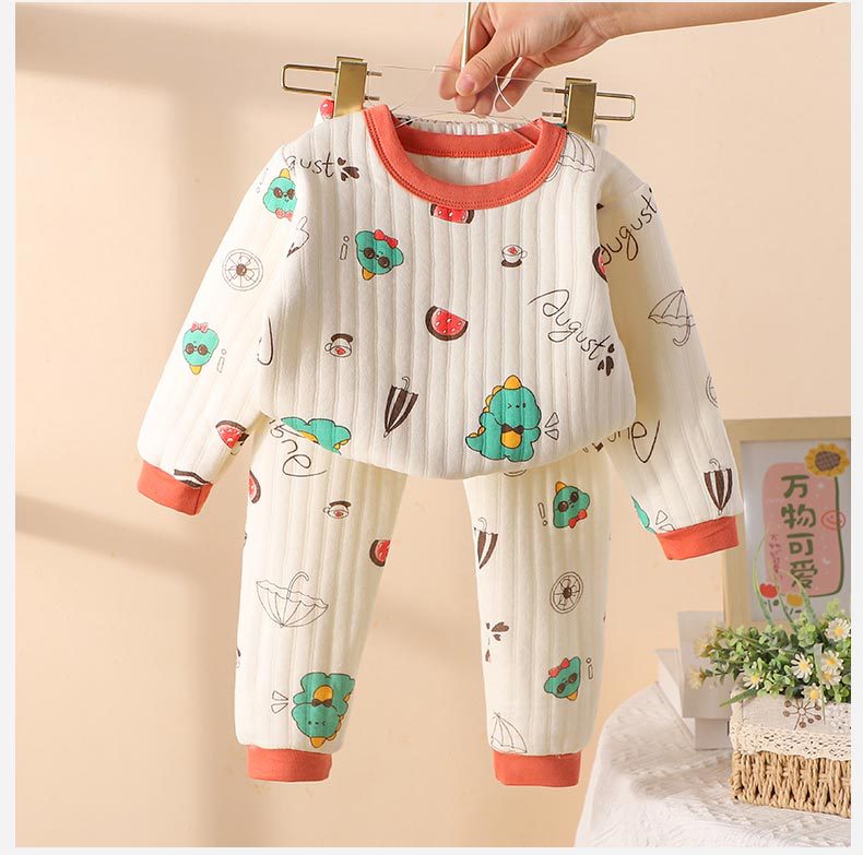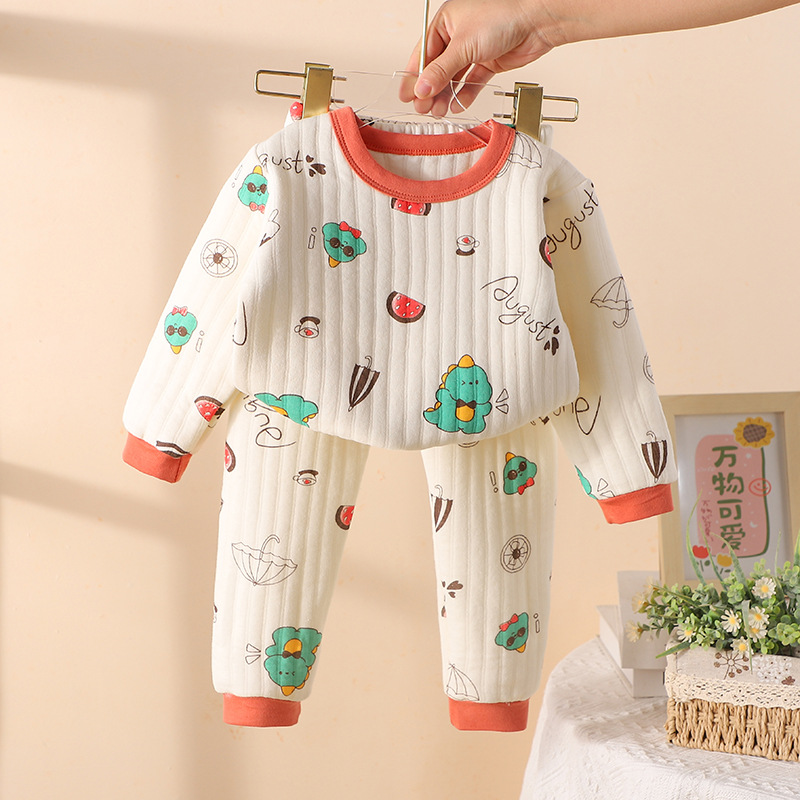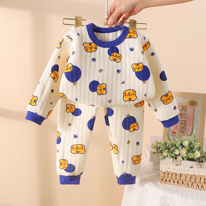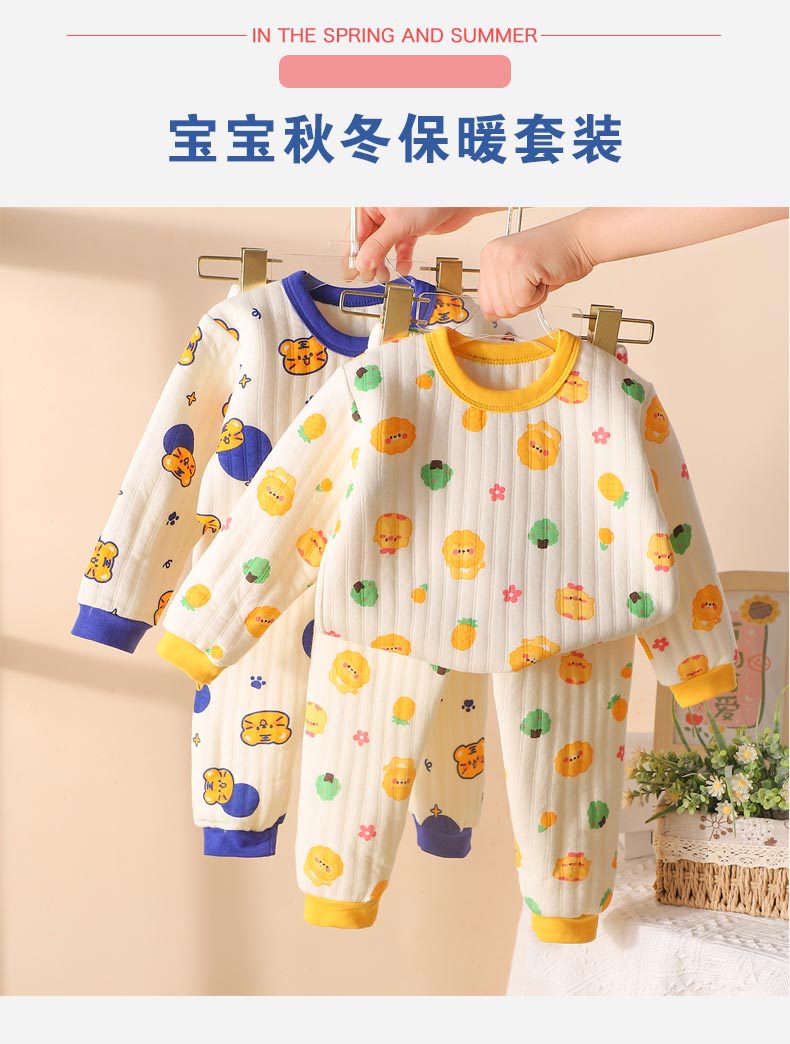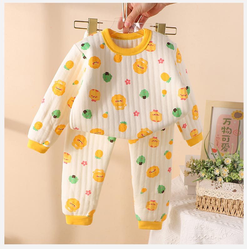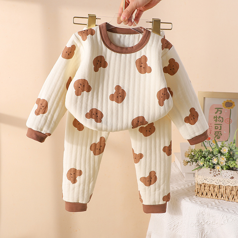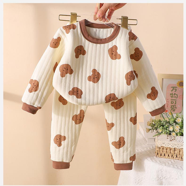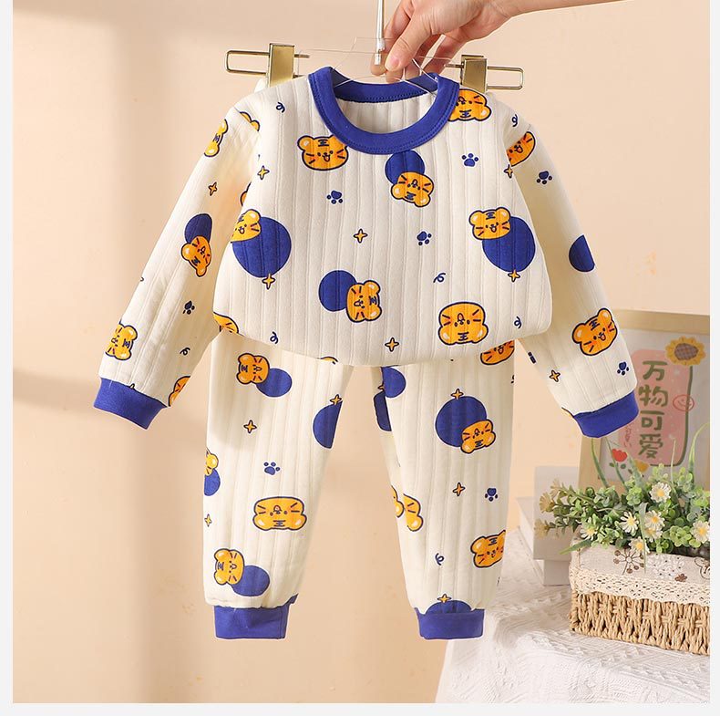 가을 겨울 신상 아동용 누빔 보온 내의 세트, 3중 보온 두꺼운 남아 여아 가을옷 가을바지 세트
