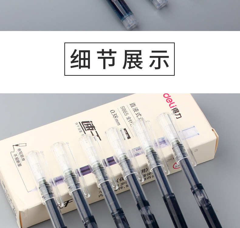 델리 젤 펜 S865 빠른 건조 미세 헤드 0.38mm 직접 액체 볼 펜 전체 바늘 사인 펜 세대