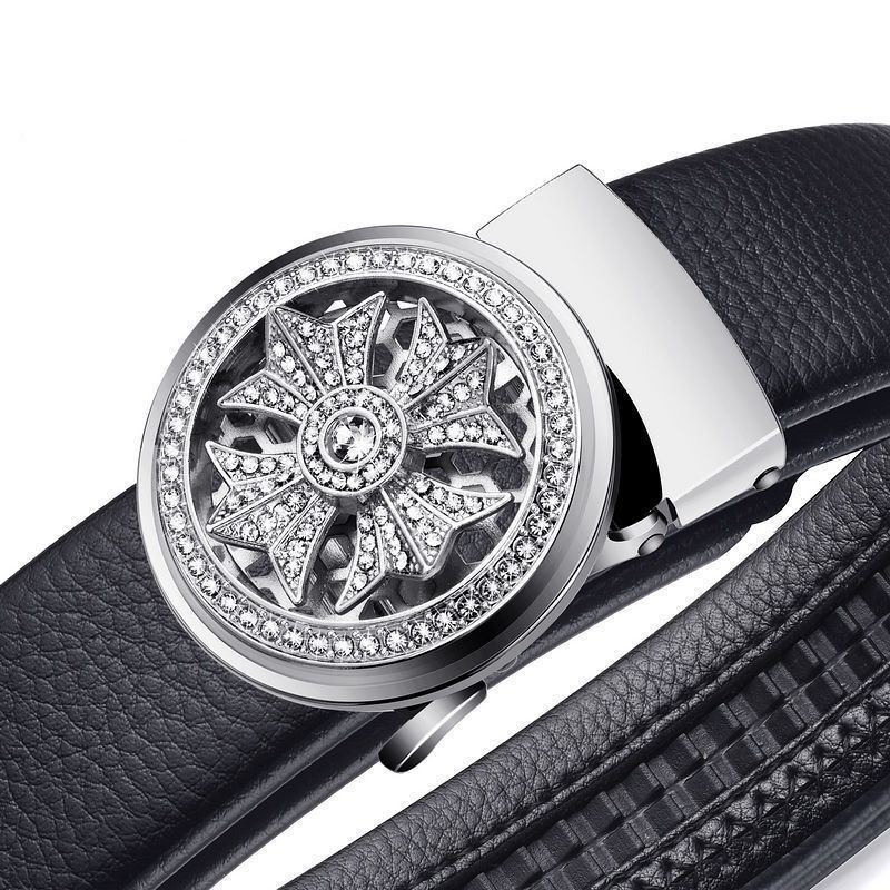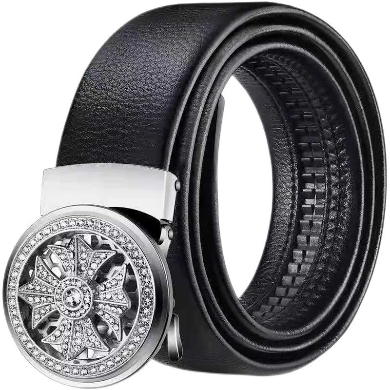 인터넷 Celebrant TikTok Time-to-Time Running Belt 남성 자동 버클 그린 중년 트랜스포터 벨트 새로운 청바지 벨트 트렌디