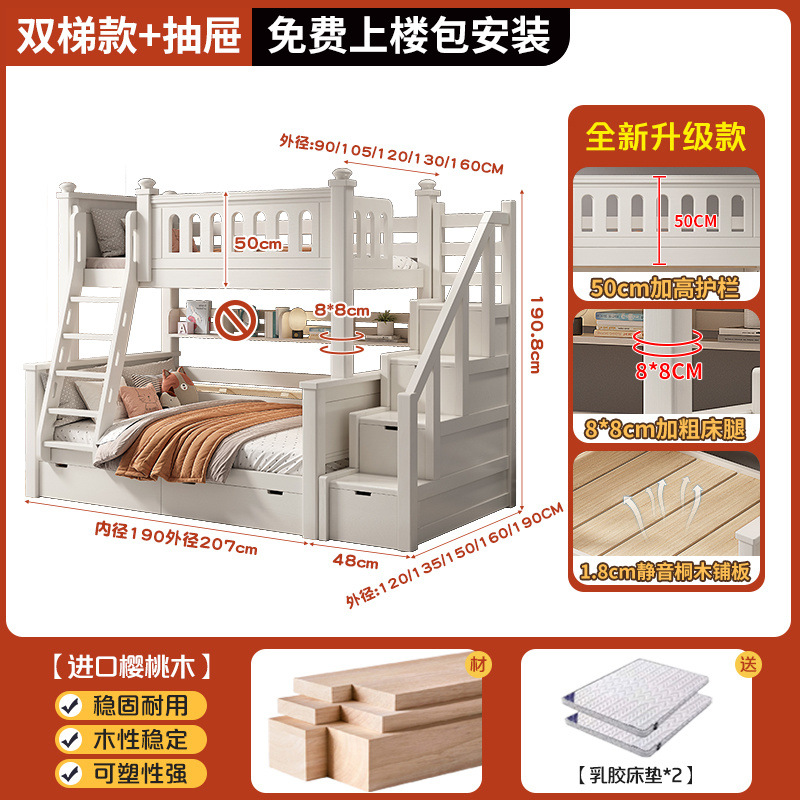 벙크 침대 풀 솔리드 우드 어린이 침대 높고 낮은 침대 체리 우드 두꺼운 엄마와 아이 침대 엄마와 아이 2 층 이층 침대 침대