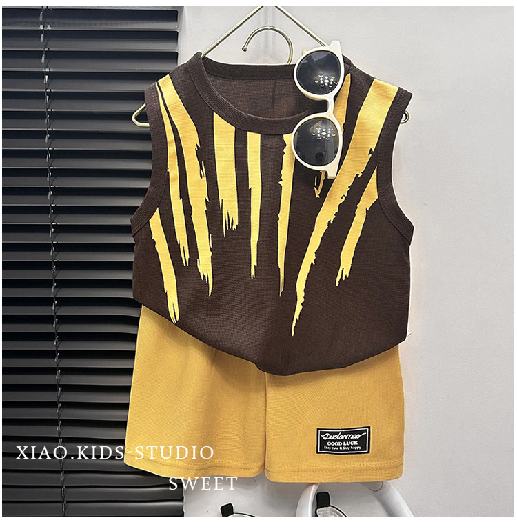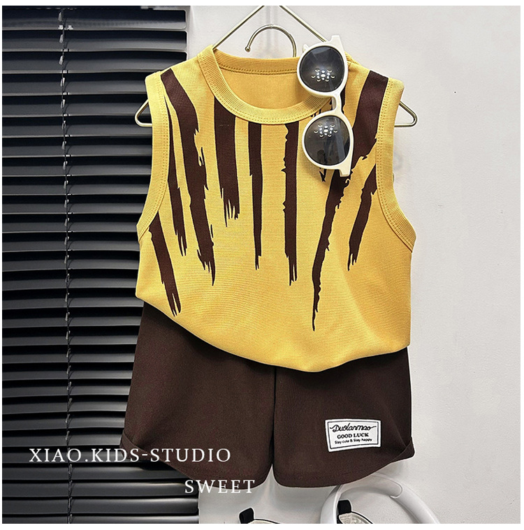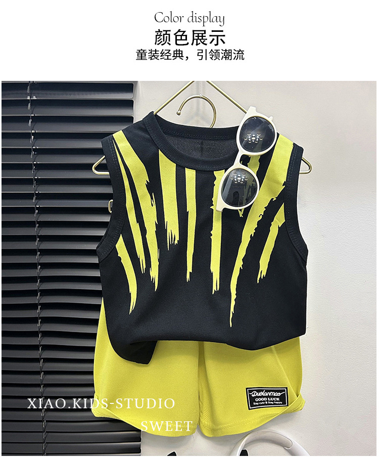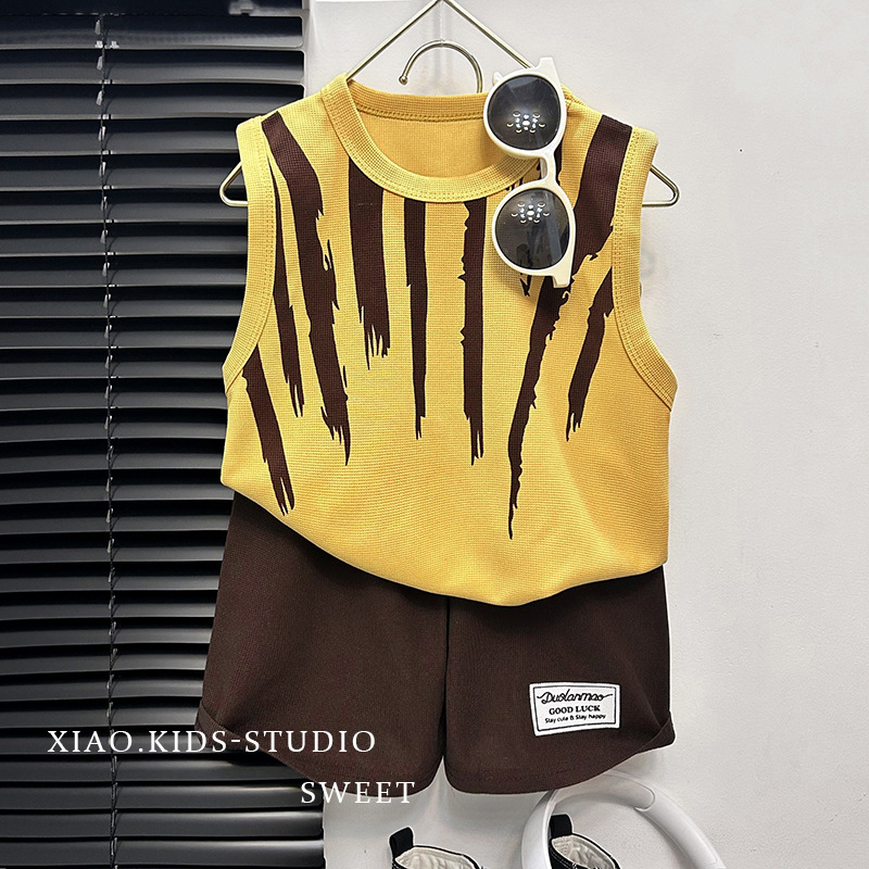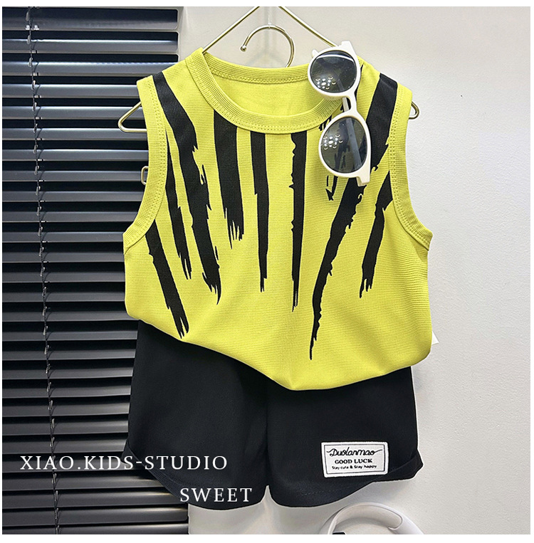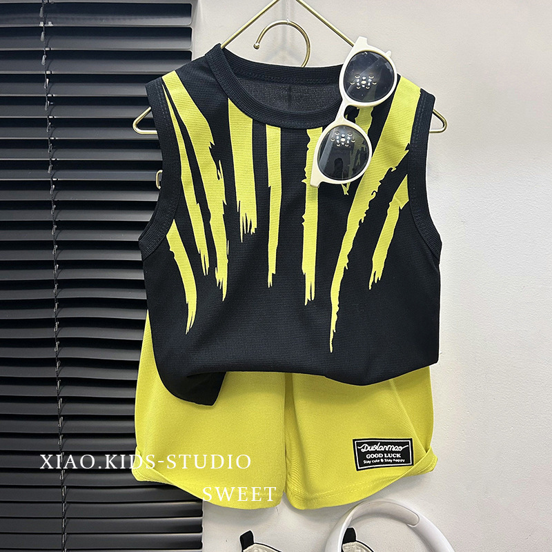 2024 년 여름 새 어린이 조끼 세트 아기 반팔 반바지 투피스 여름 아동복 한국 유행 어린이 세트