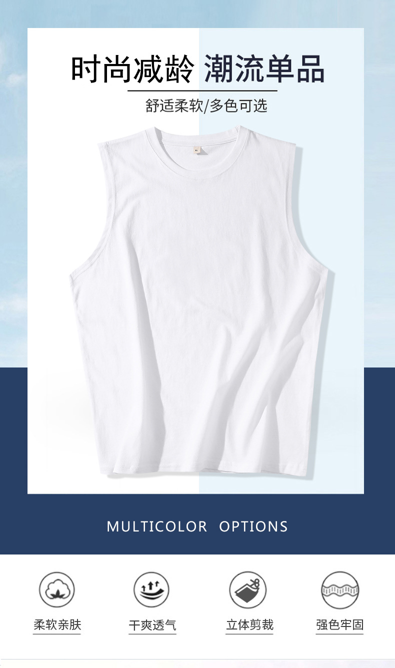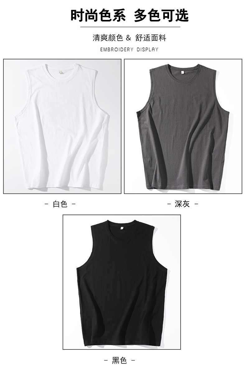 헤비급 순수 코튼 스포츠 조끼 남성 여름 ins 흰색 느슨한 민소매 조끼 피트니스 커플 남성용 반팔 티셔츠