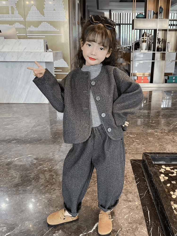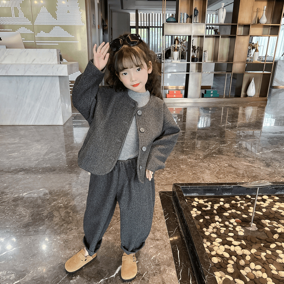 소녀의 봄 원피스 세트 2025 새로운 스타일 어린이 가을과 겨울 모직 3 피스 세트 유행 니치 봄과 가을 유행스토어 가기