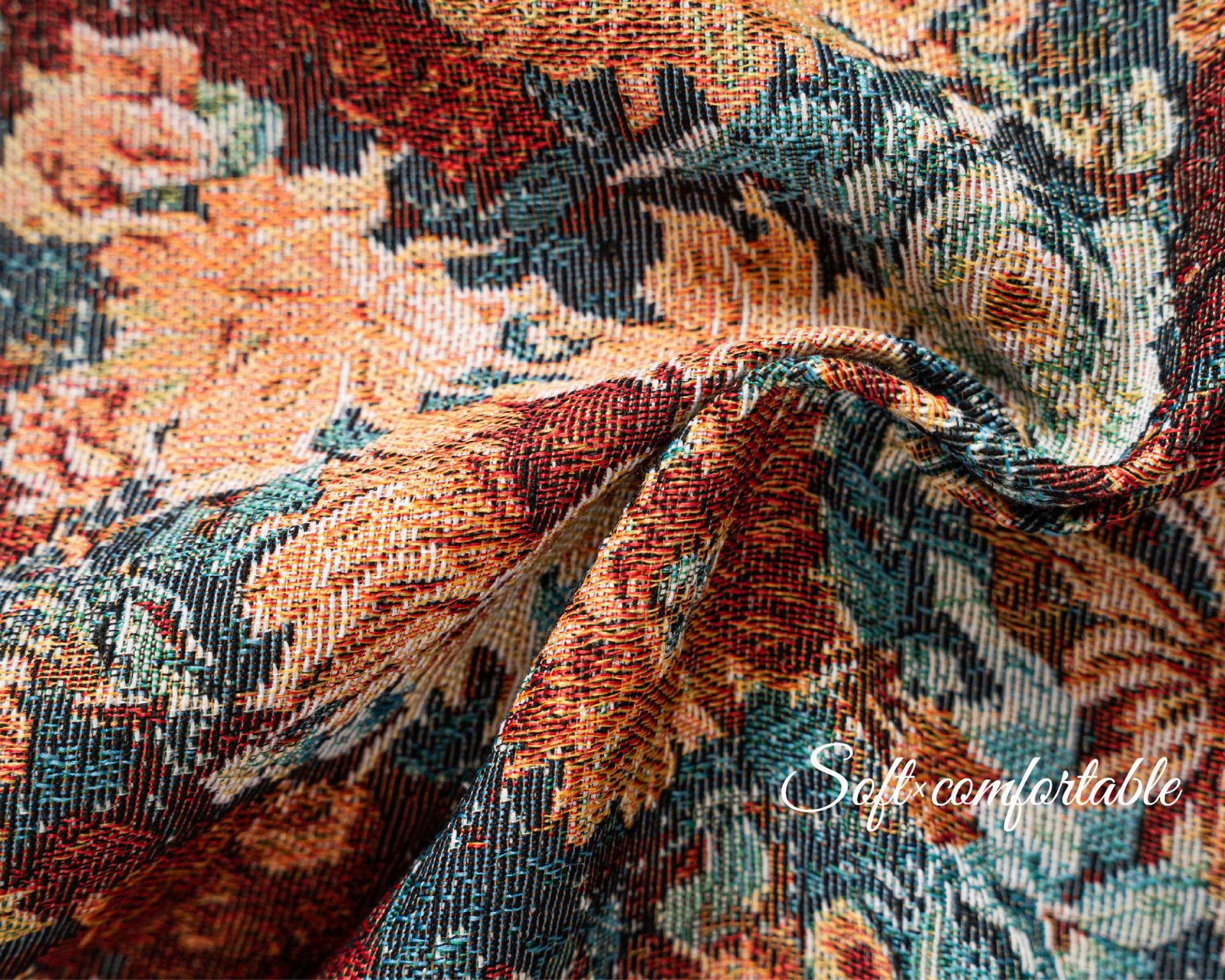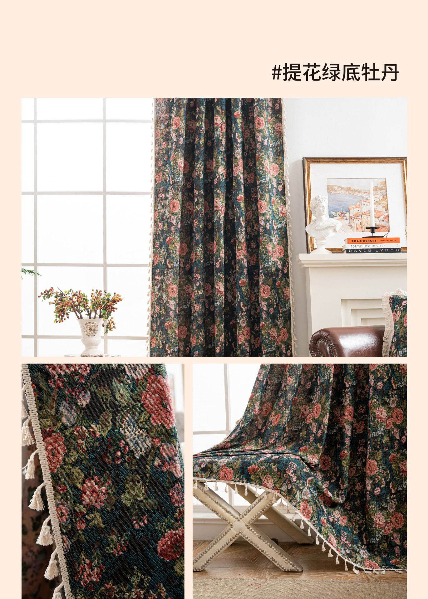 이만 키 라임 프렌치 커튼 마감 자카드 오렌지 플라워 술 커튼 반음영 거실 클래식 두껍게스토어 가기