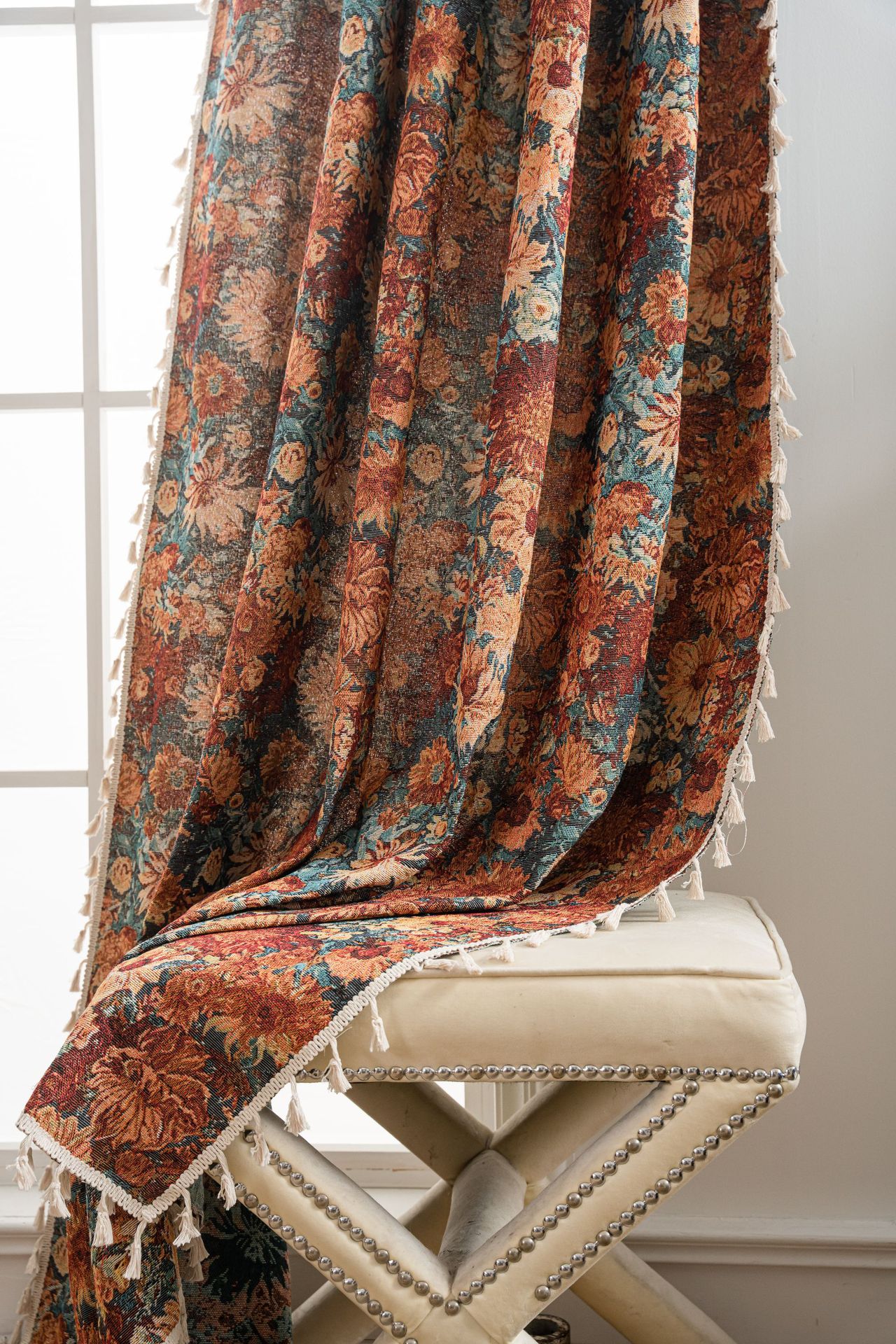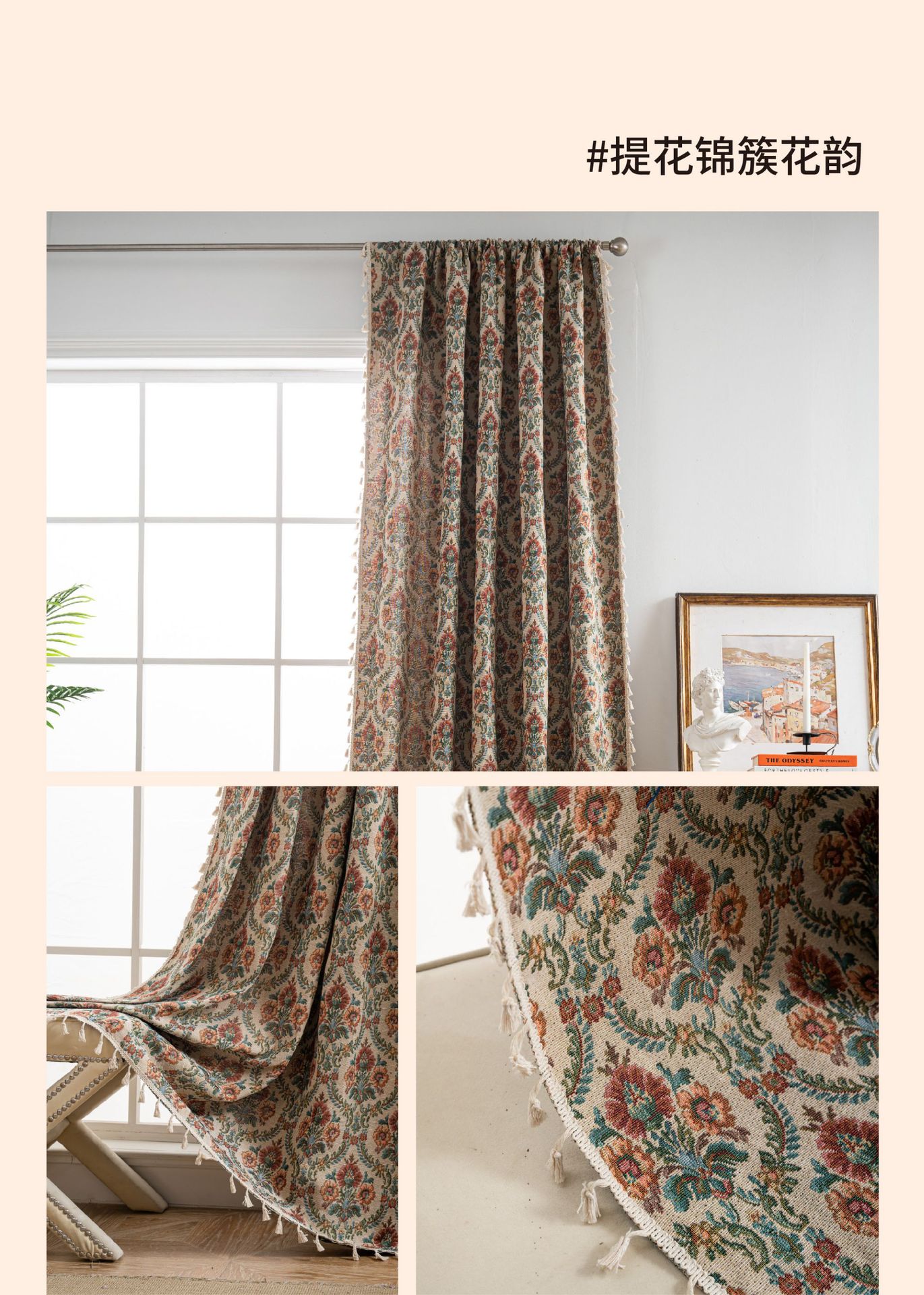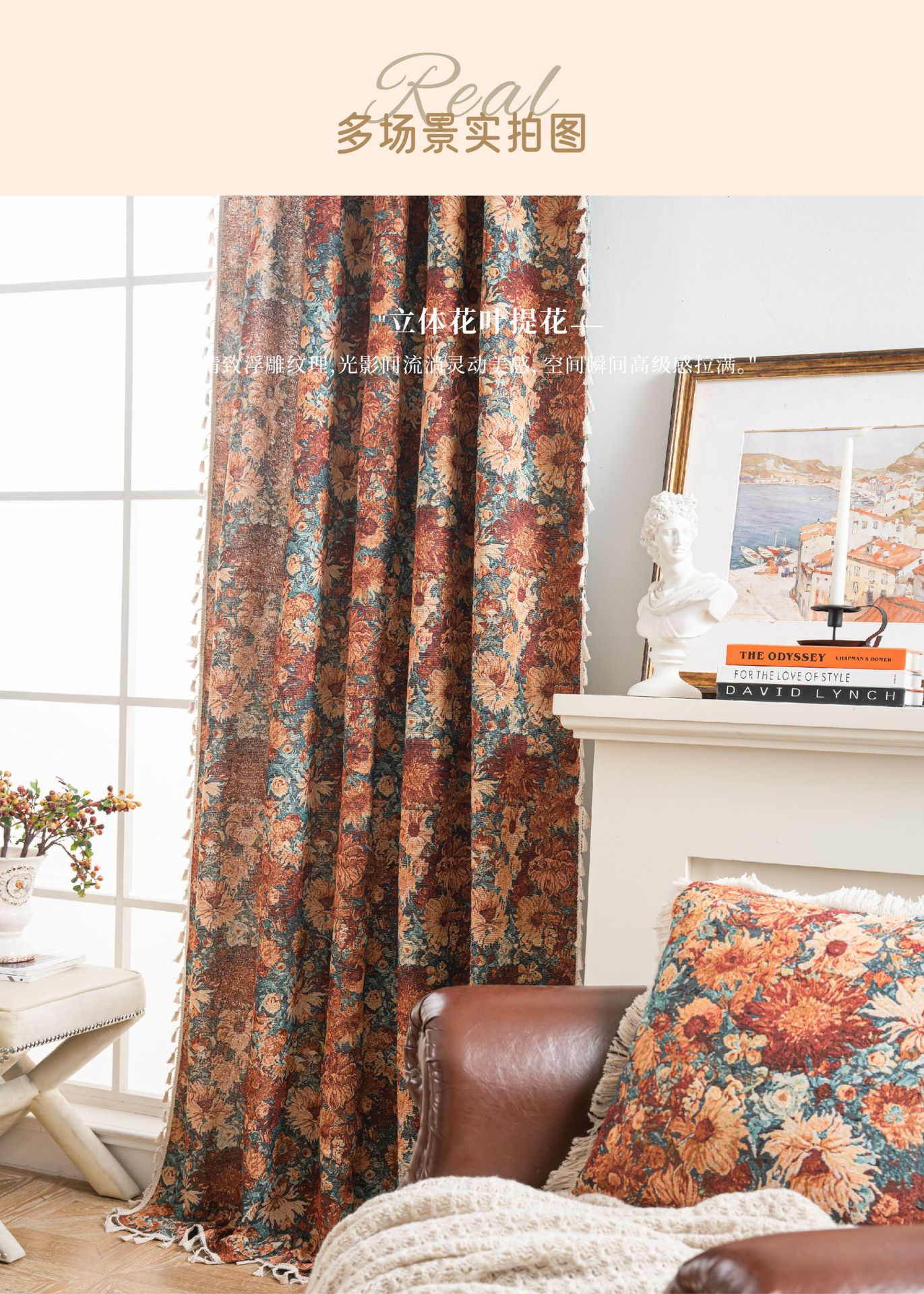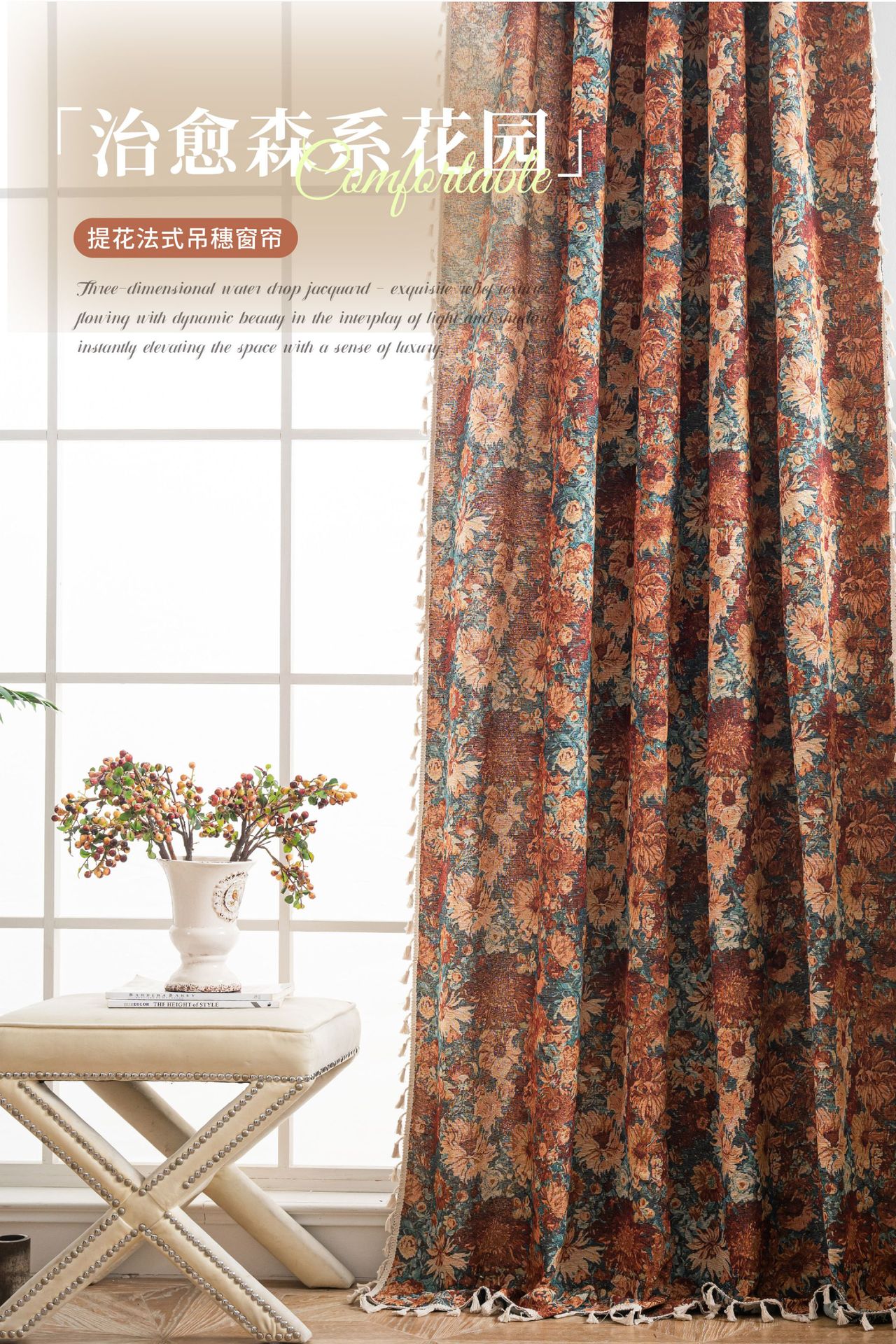 이만 키 라임 프렌치 커튼 마감 자카드 오렌지 플라워 술 커튼 반음영 거실 클래식 두껍게