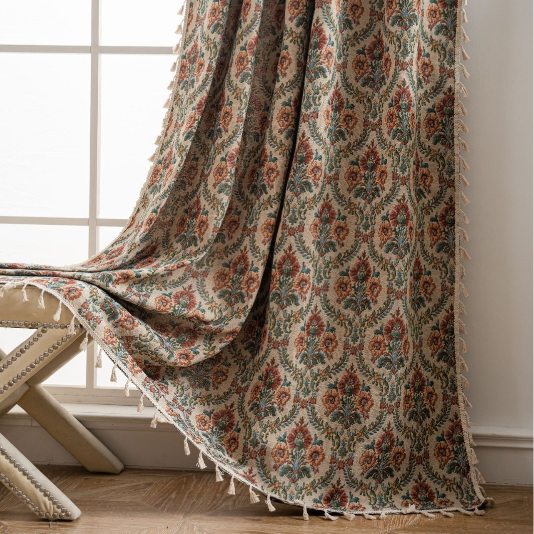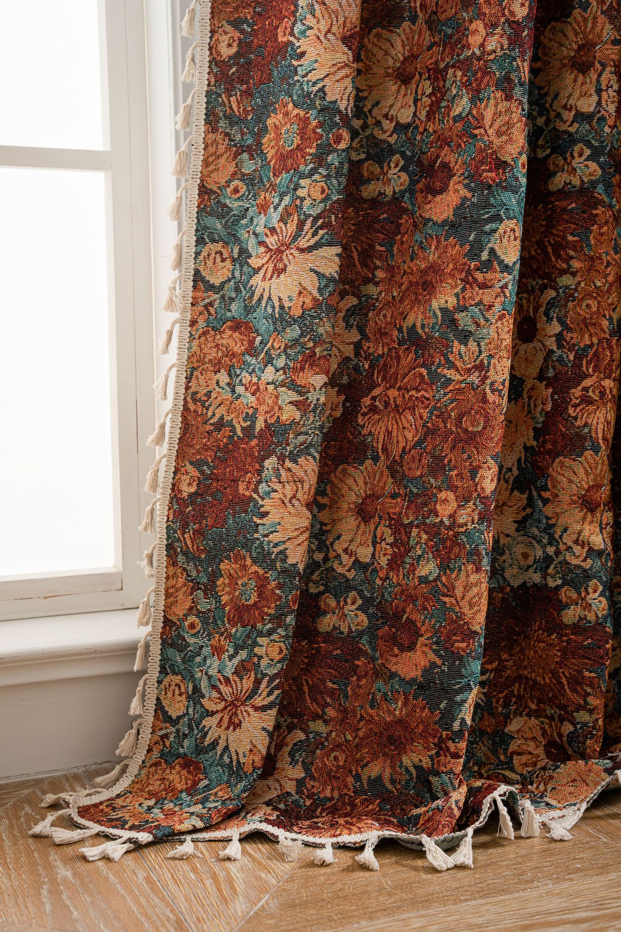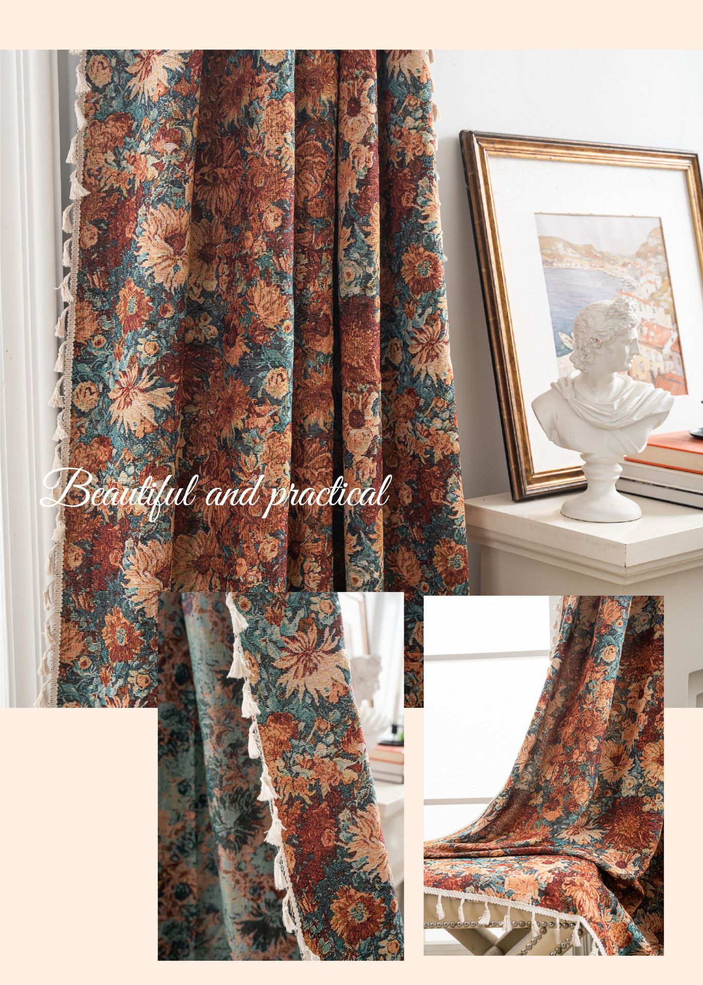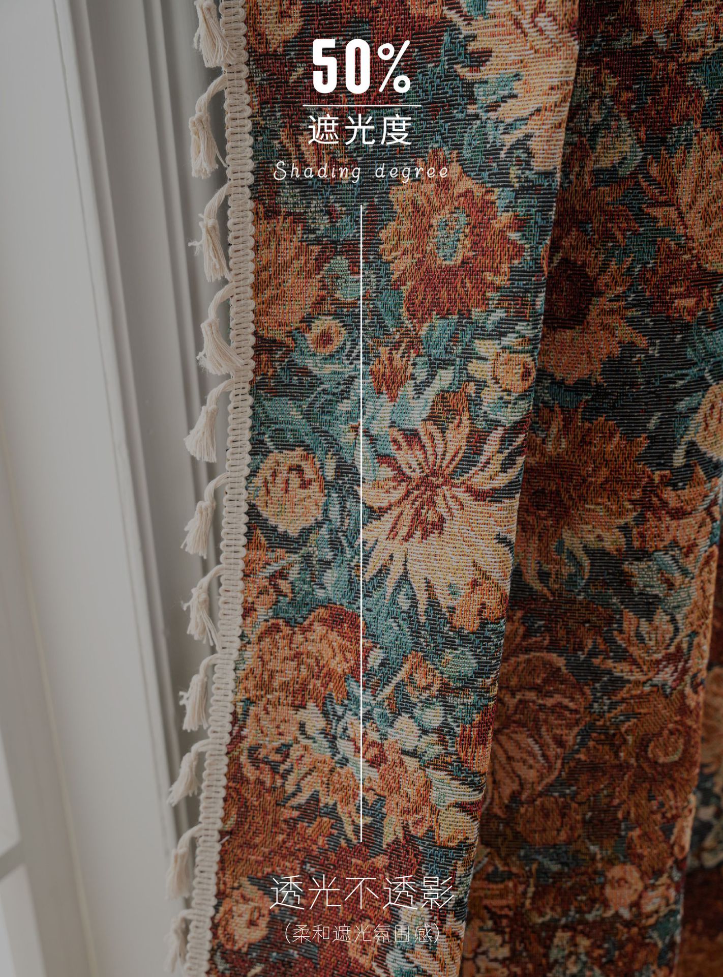 이만 키 라임 프렌치 커튼 마감 자카드 오렌지 플라워 술 커튼 반음영 거실 클래식 두껍게