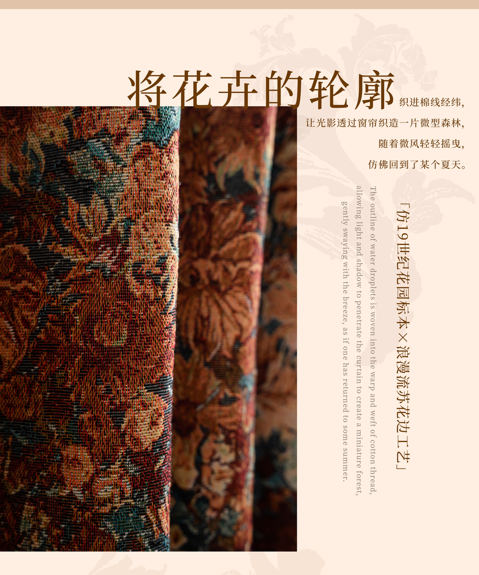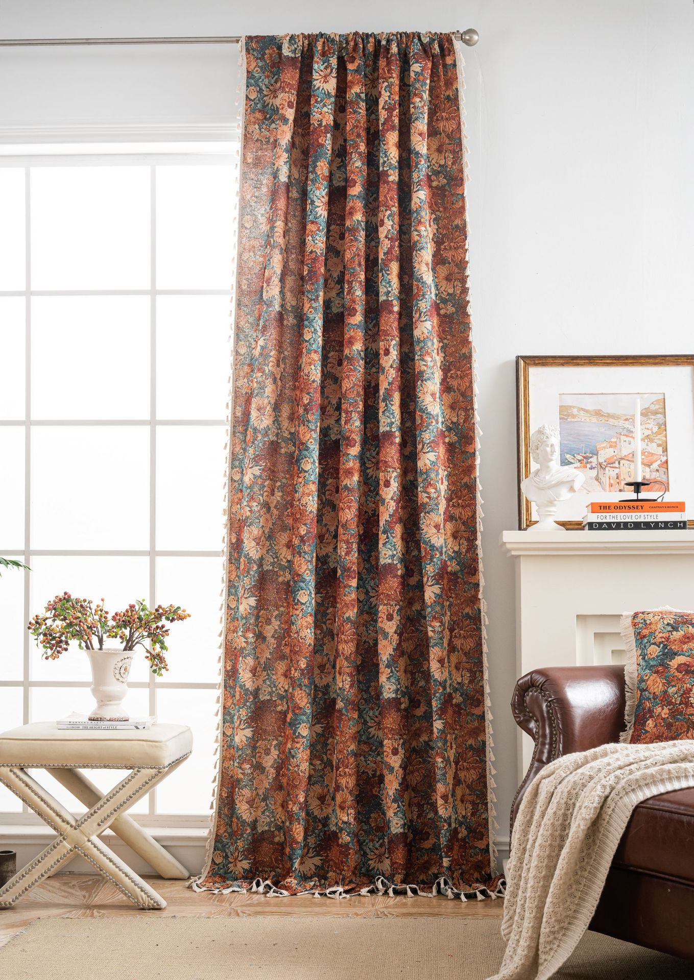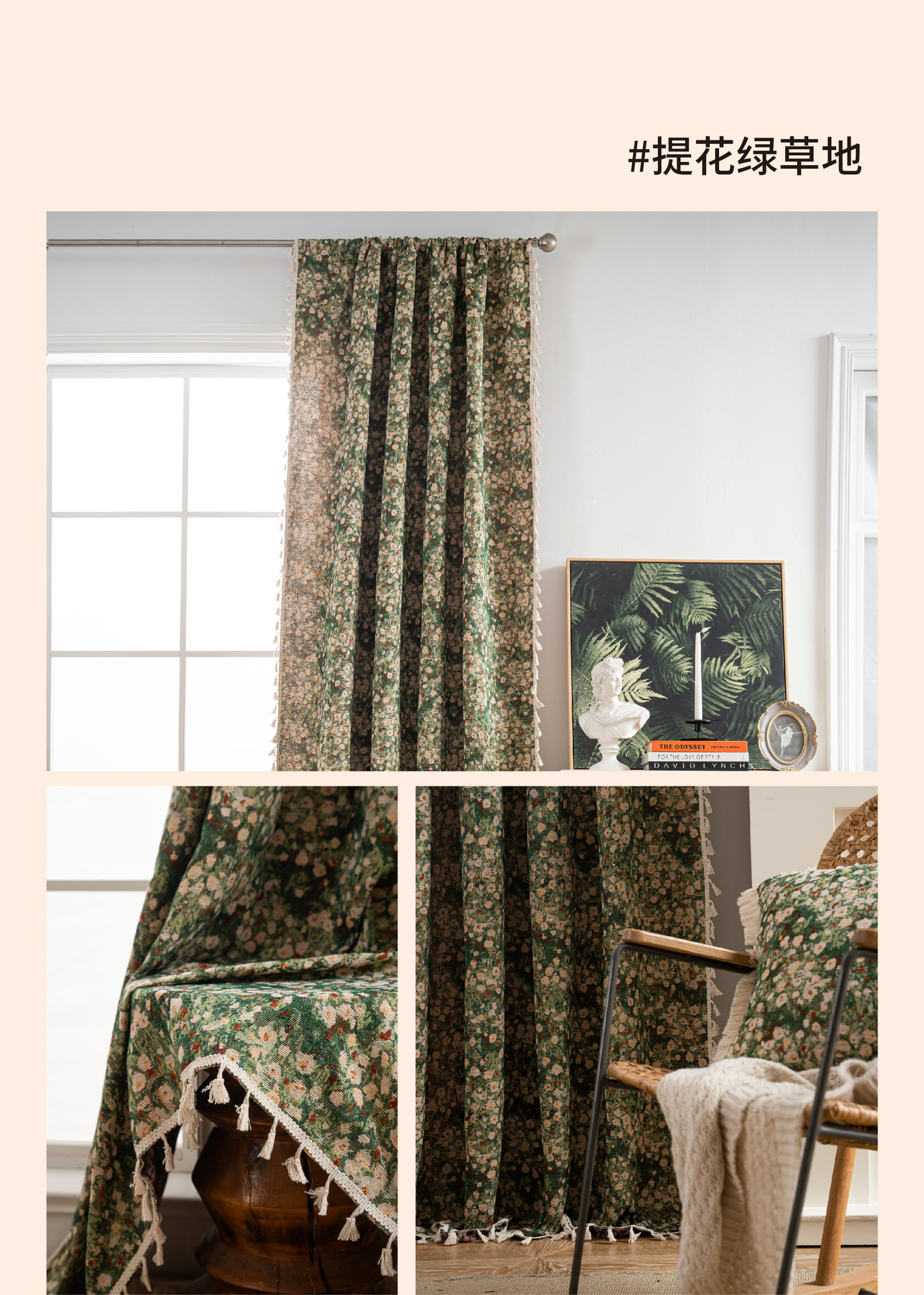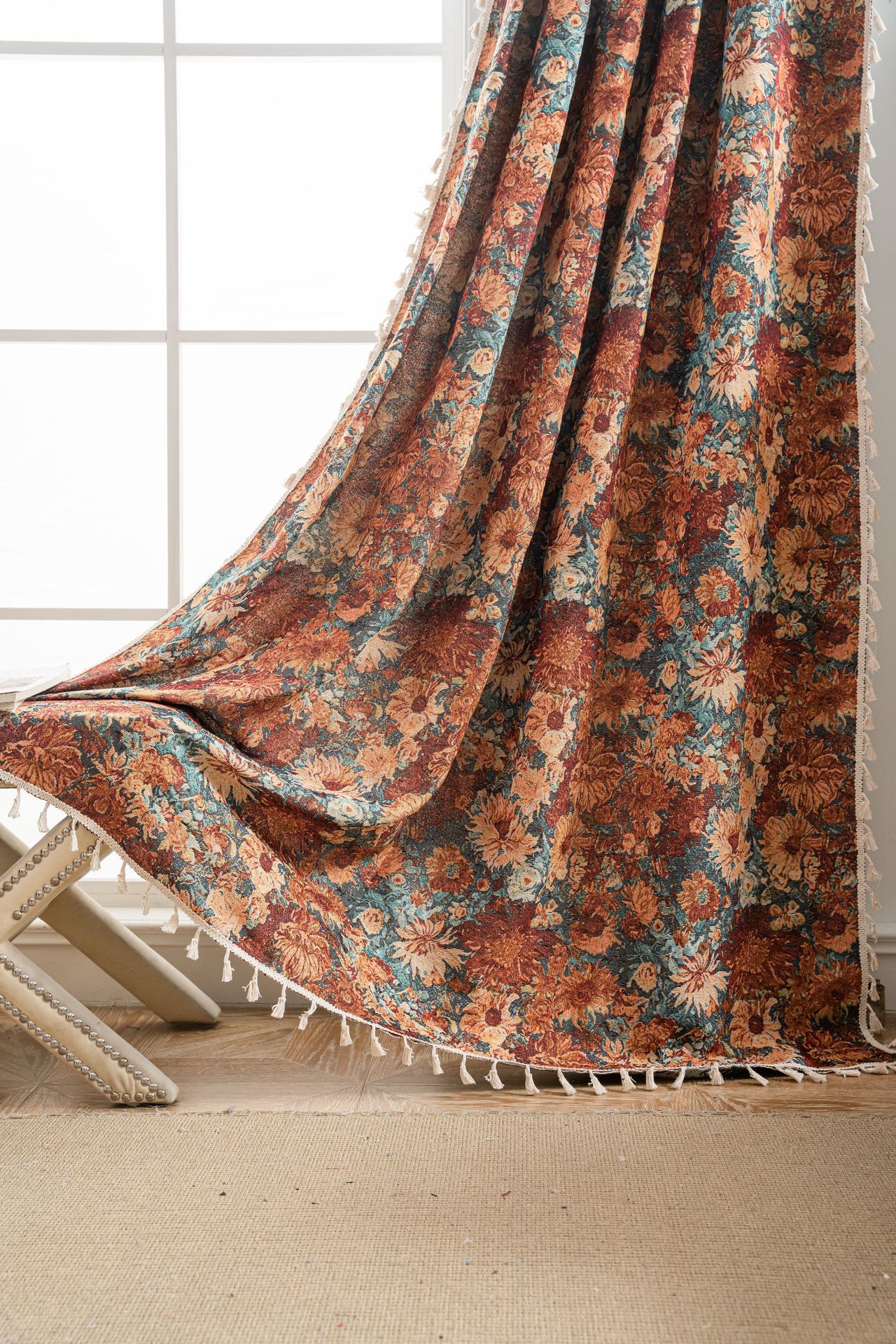 이만 키 라임 프렌치 커튼 마감 자카드 오렌지 플라워 술 커튼 반음영 거실 클래식 두껍게