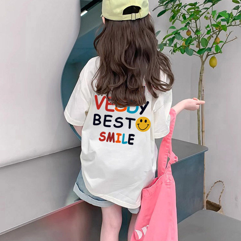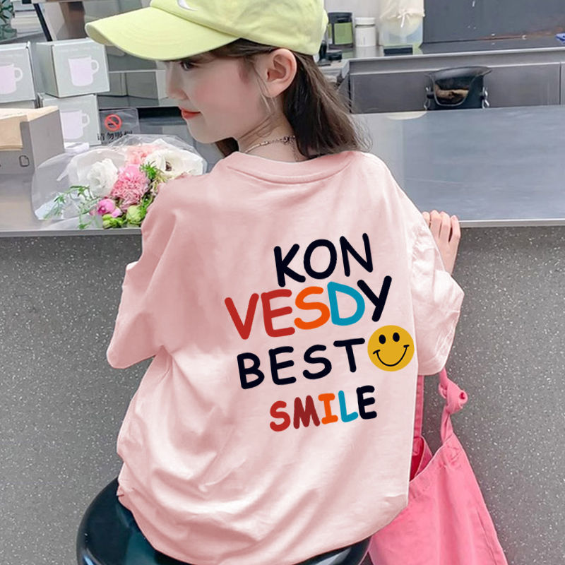 아동용 반팔 티셔츠 2025 새로운 여름 스타일 중대형 아동용 루즈 심플 탑 베이비 다용도 순면 바닥 셔츠스토어 가기