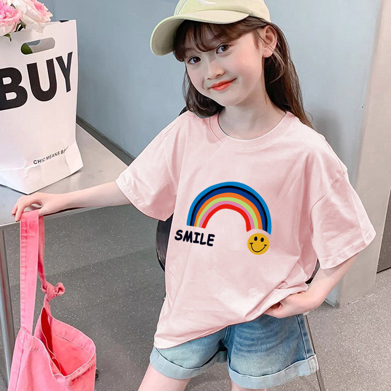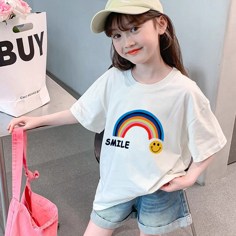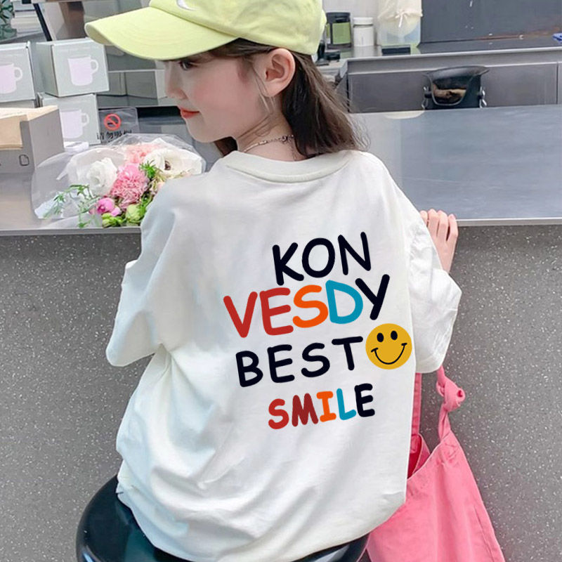 아동용 반팔 티셔츠 2025 새로운 여름 스타일 중대형 아동용 루즈 심플 탑 베이비 다용도 순면 바닥 셔츠
