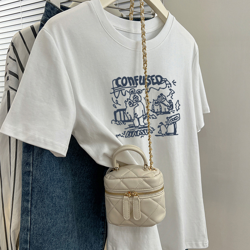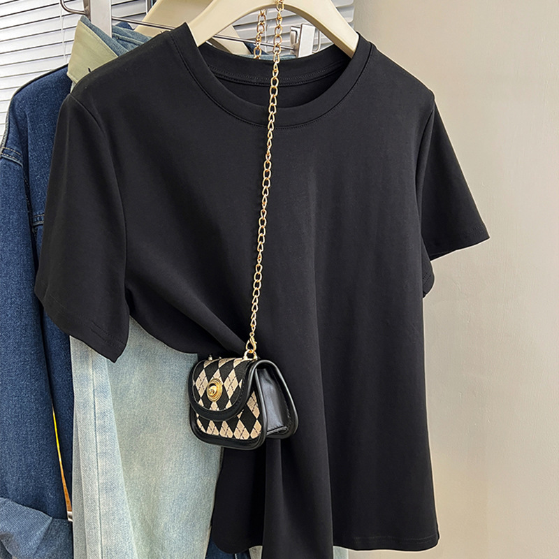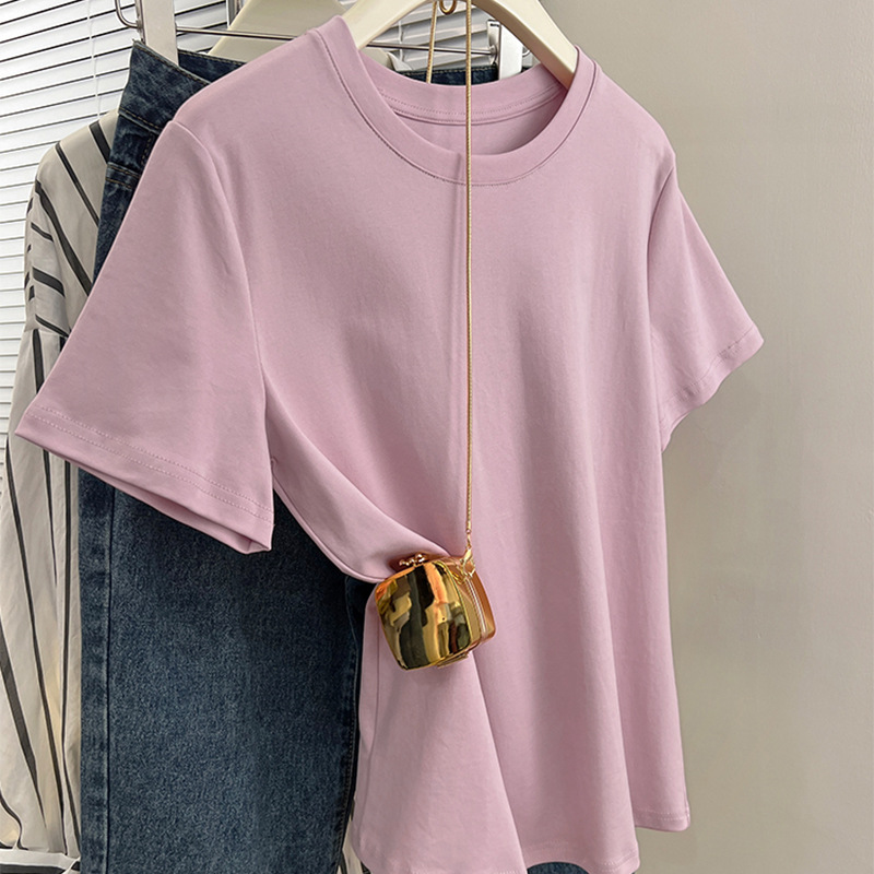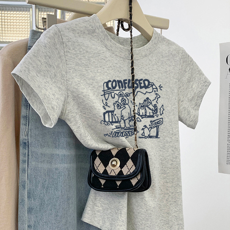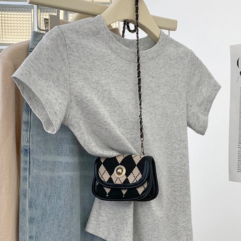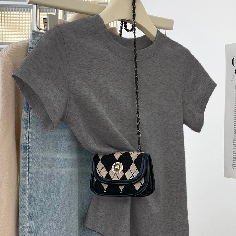 그레이 크루 넥 어깨 반팔 티셔츠 여자 2024 년 여름 새로운 슬림 핏 슬리밍 올매치 코튼 반소매 티셔츠 탑