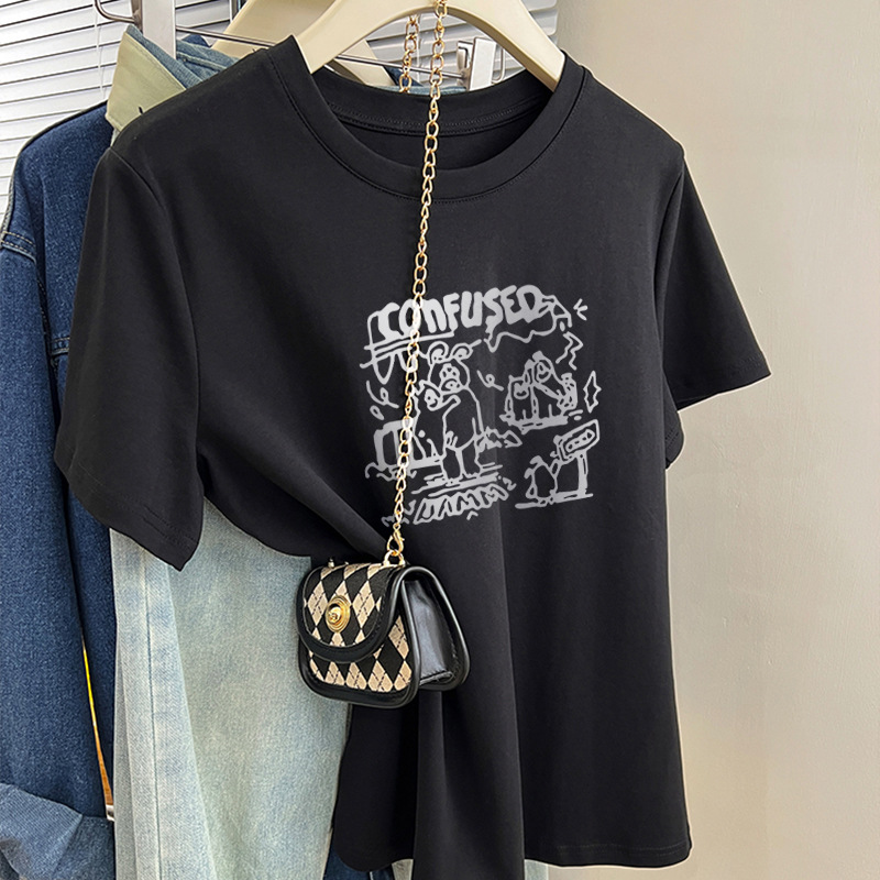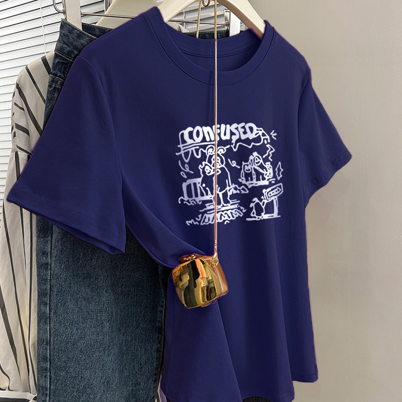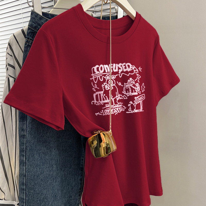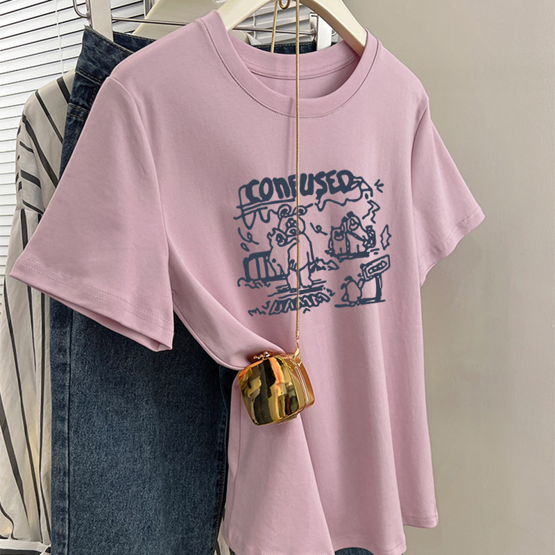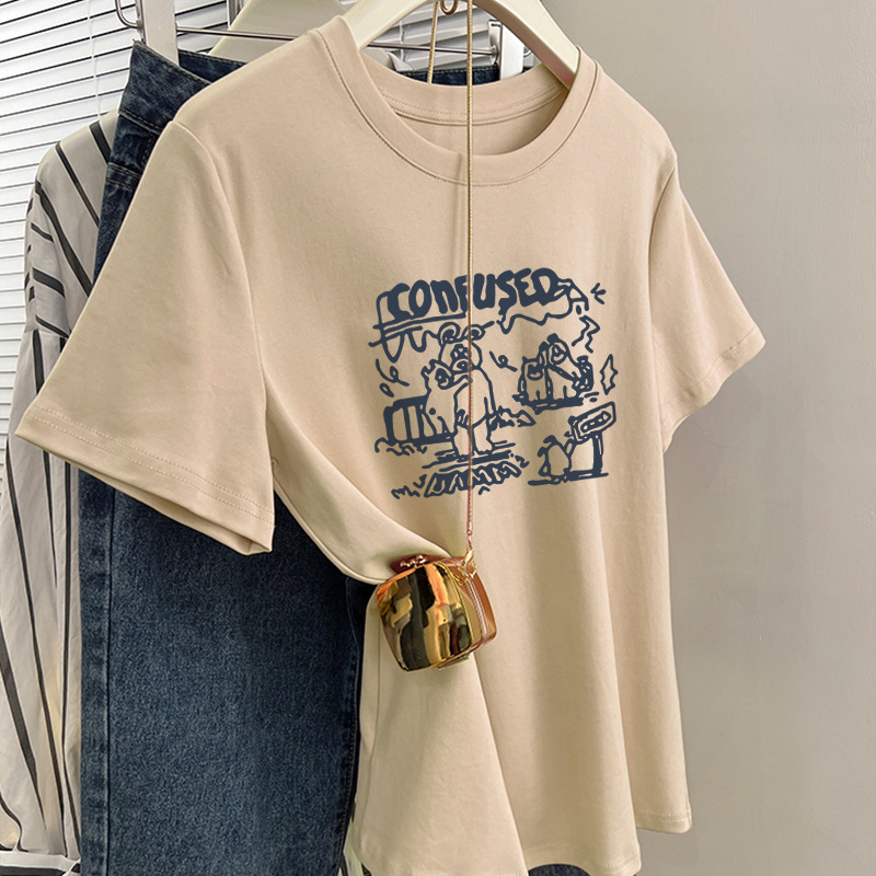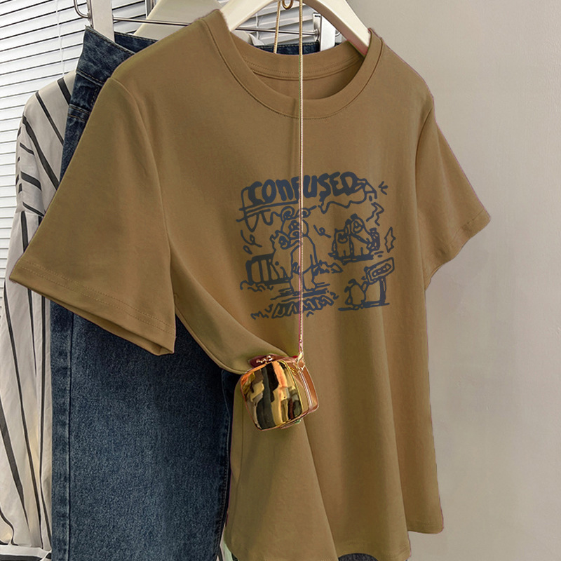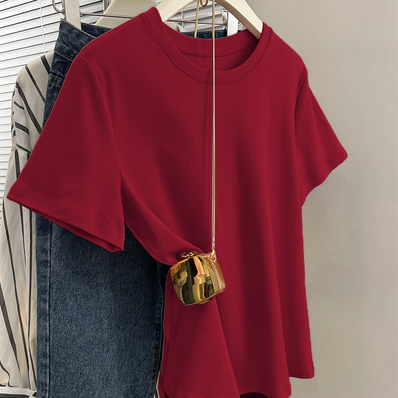 그레이 크루 넥 어깨 반팔 티셔츠 여자 2024 년 여름 새로운 슬림 핏 슬리밍 올매치 코튼 반소매 티셔츠 탑스토어 가기