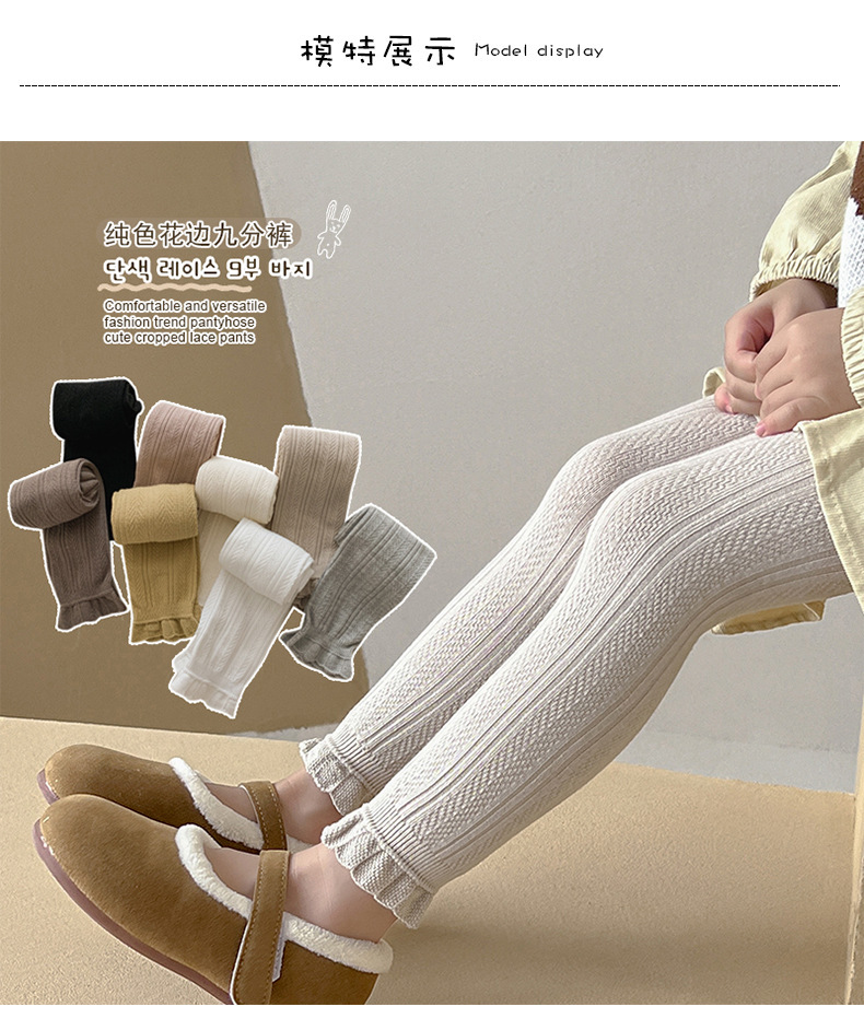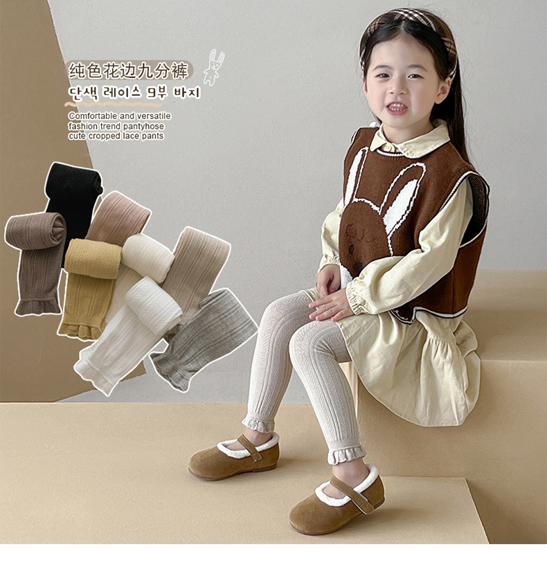 소녀 레깅스 봄과 가을 얇은 밀 패턴 단색 어린이 레깅스 새로운 9 점 소녀 바지 도매스토어 가기