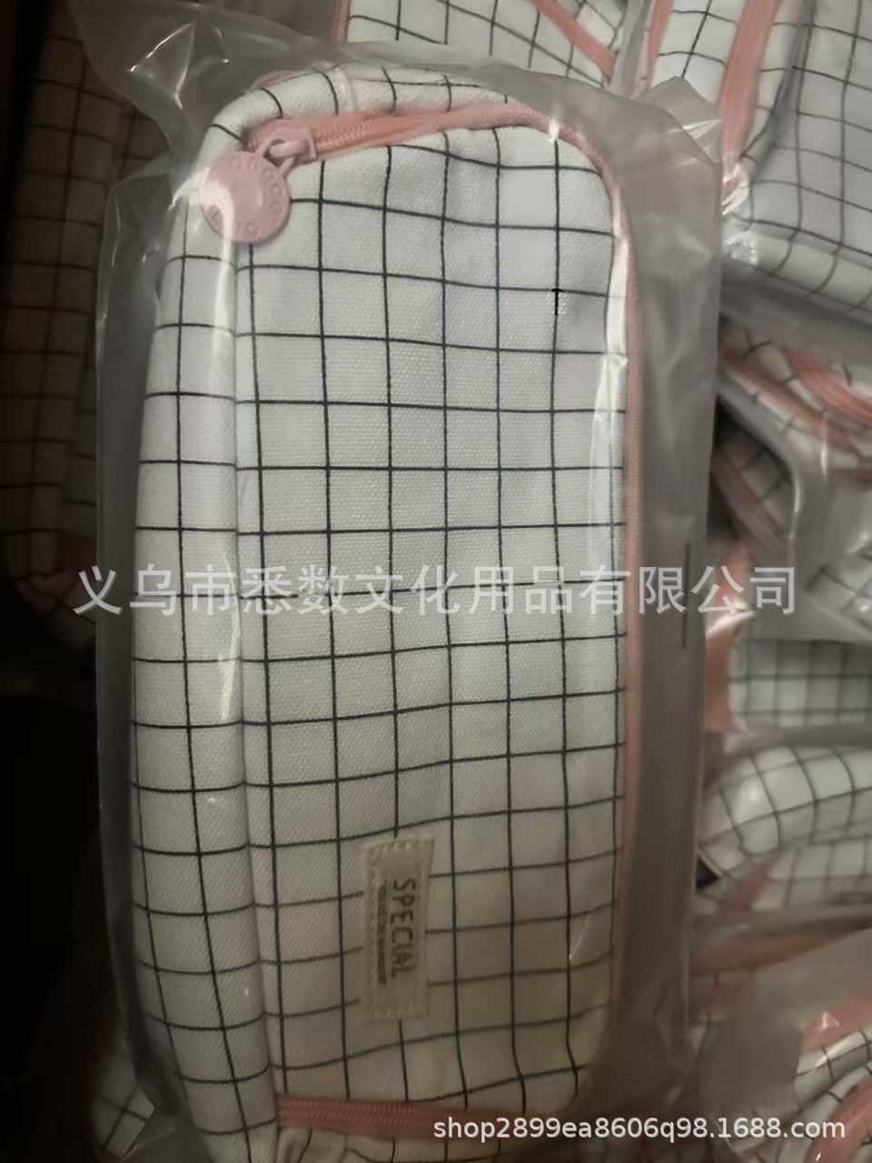 • 더블 오픈 필통 - 흰색 체크 무늬
