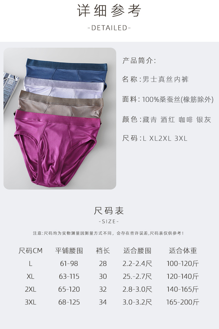 100 마리의 뽕나무 실크 남자 브리프 크로트 더블 레이어 실크 편안한 통기성 느슨한 통기성 남성 속옷스토어 가기