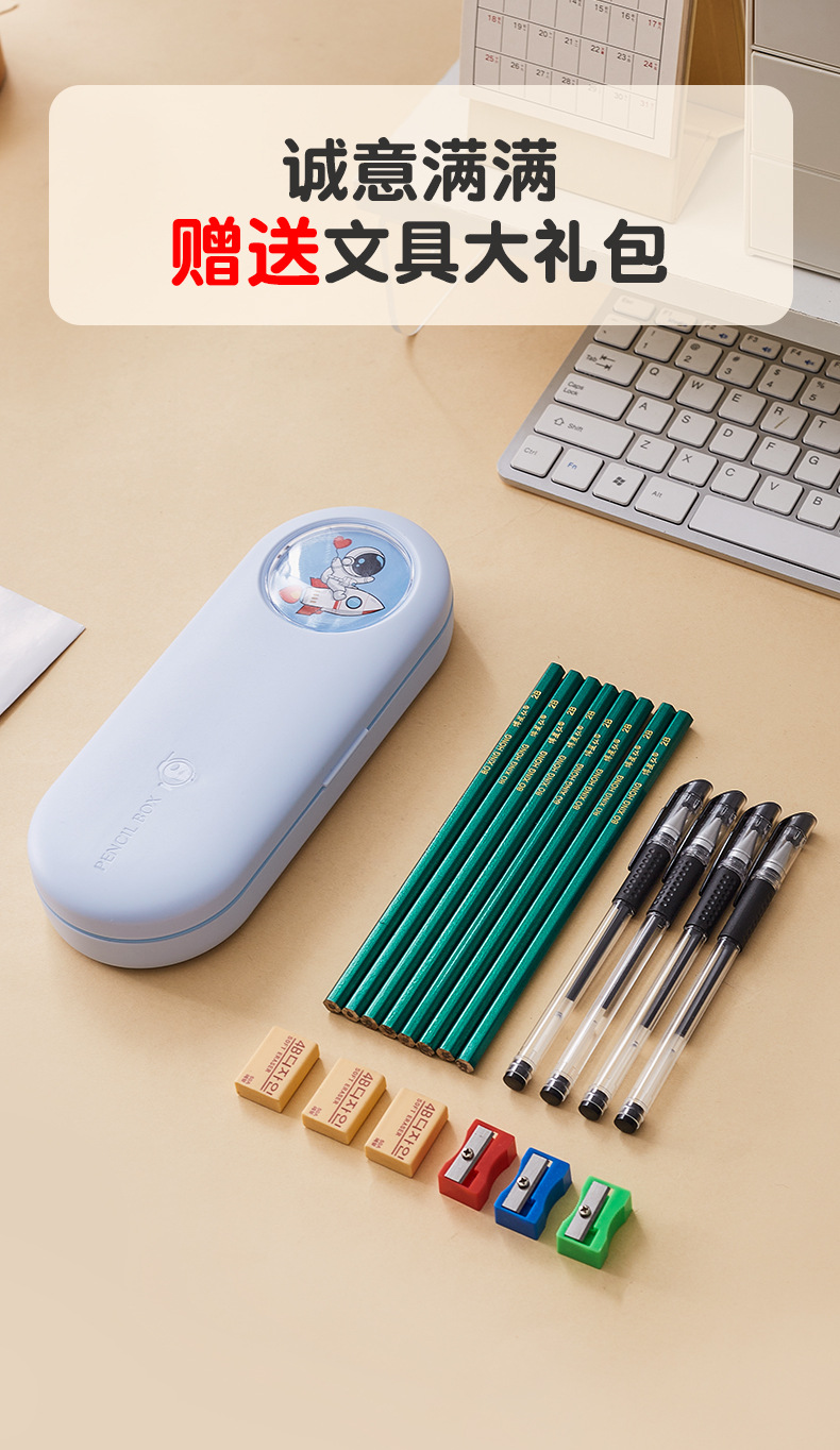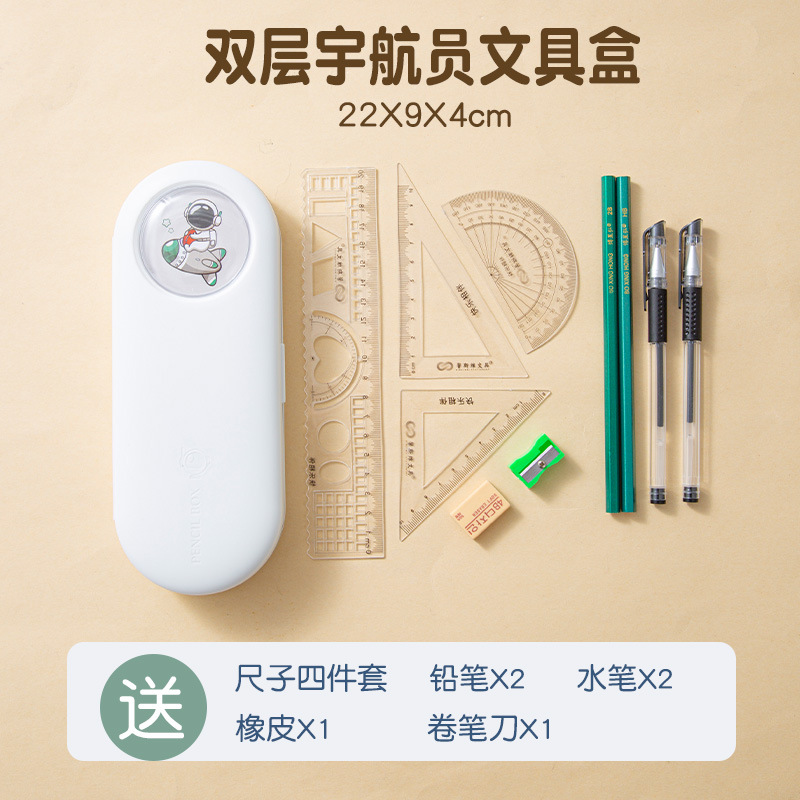宇航员双层文具盒:装箱数150 尺寸:长22宽9高4 重量:178克