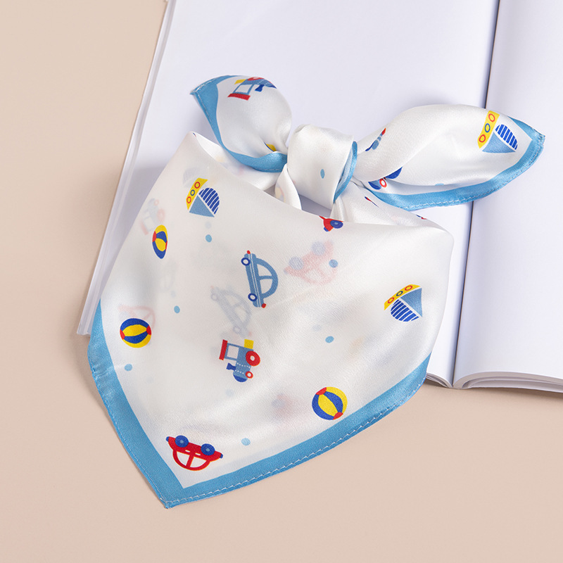 어린 이용 스카프 아기 만화 작은 광장 스카프 2025 소년과 소녀를위한 새로운 뽕나무 실크 스카프 목 보호 봄과 가을스토어 가기