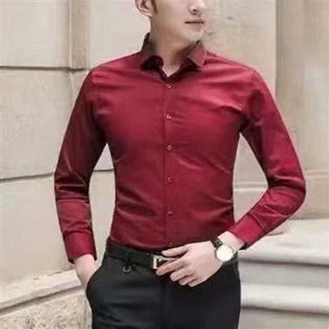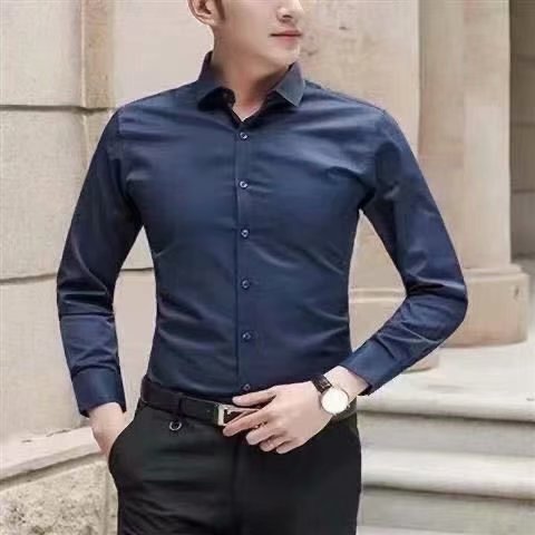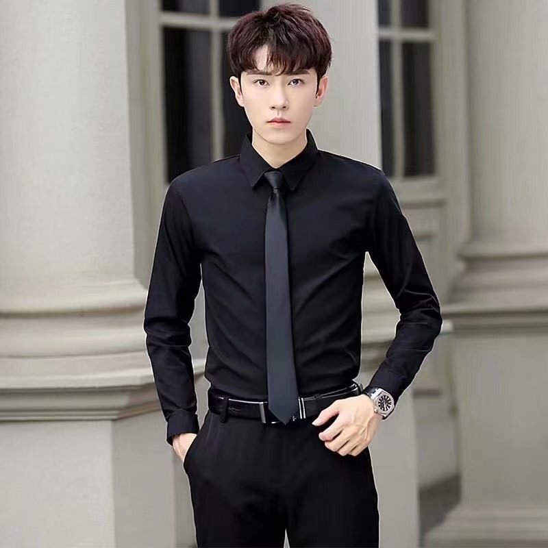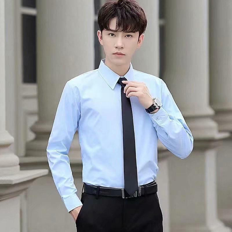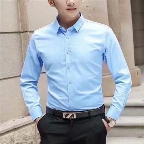 봄과 여름 셔츠 남자 긴팔 한국 스타일 슬림 핏 청소년 대학 스타일 셔츠 남자의 유행 잘 생긴 단색 탑스토어 가기