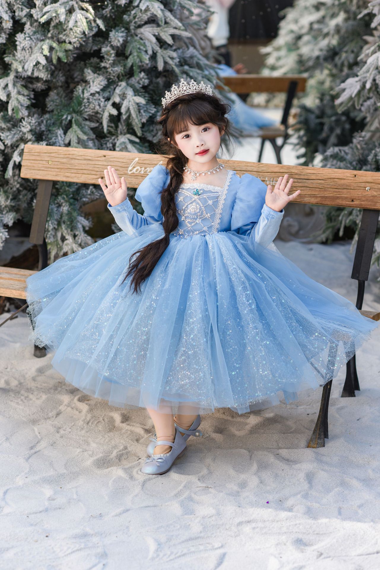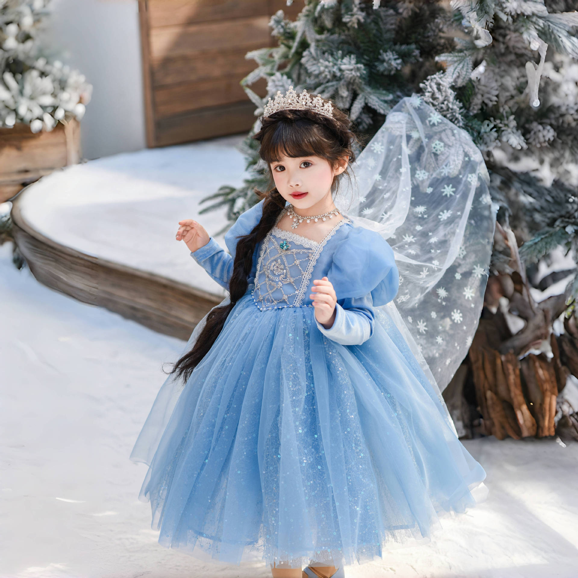 봄과 여름 2025 새로운 도착 푹신한 원피스 베일 원피스 소녀 공연 공주 아이샤 원피스 눈송이 망토 냉동 생일스토어 가기