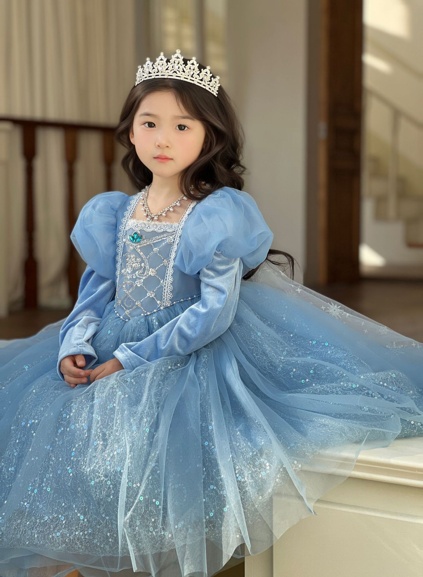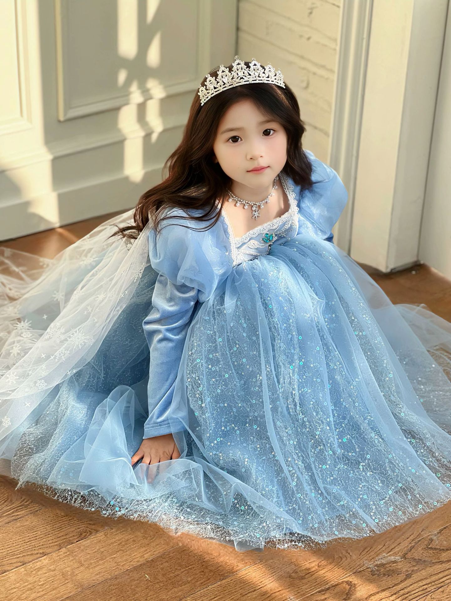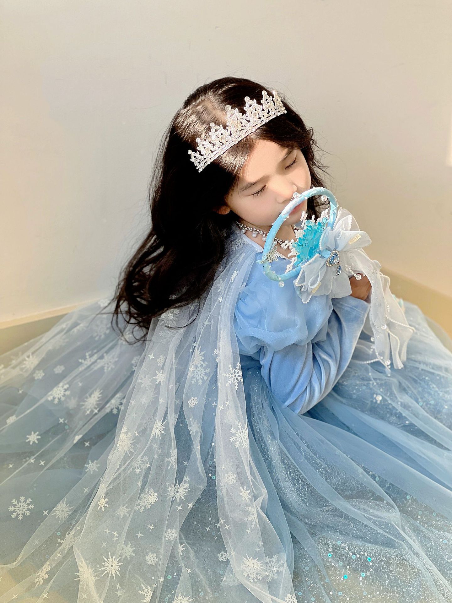 • 별빛 엘사 공주 드레스 + 눈꽃 망토 + 왕관