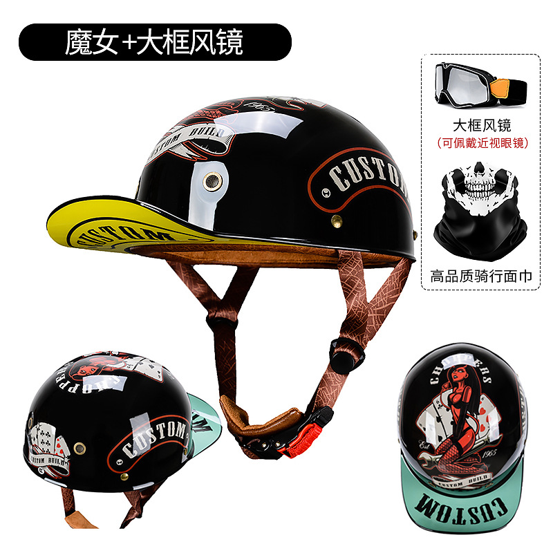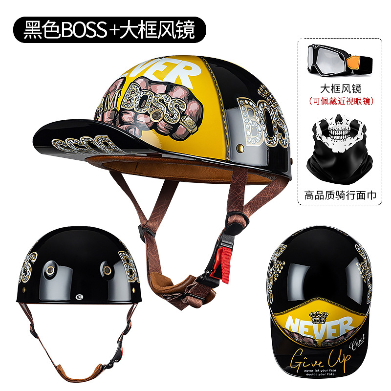 3C 공인 개인화 된 특종 헬멧 레트로 오토바이 헬멧 남자 페달 오토바이 하프 헬멧 겨울 전기 자동차 야구 모자 여자스토어 가기