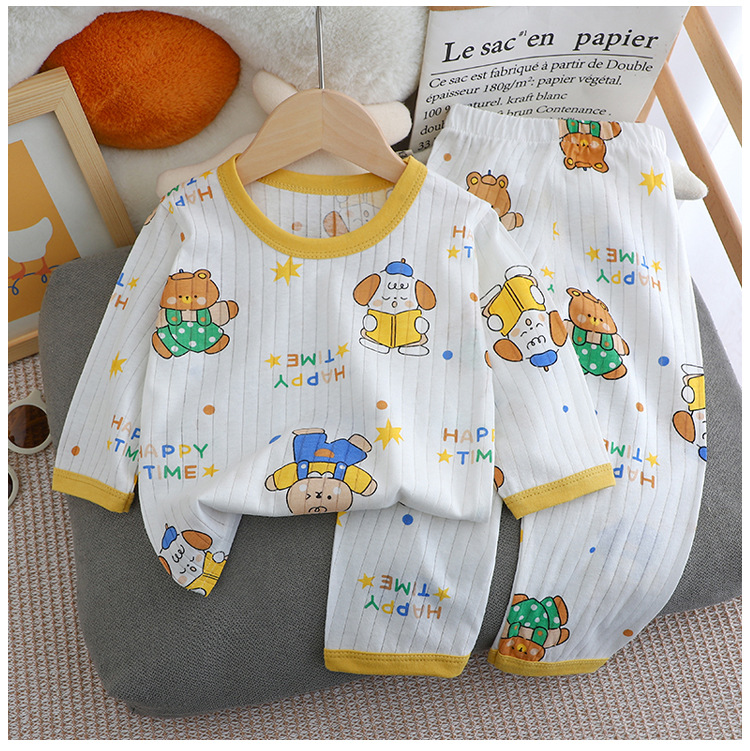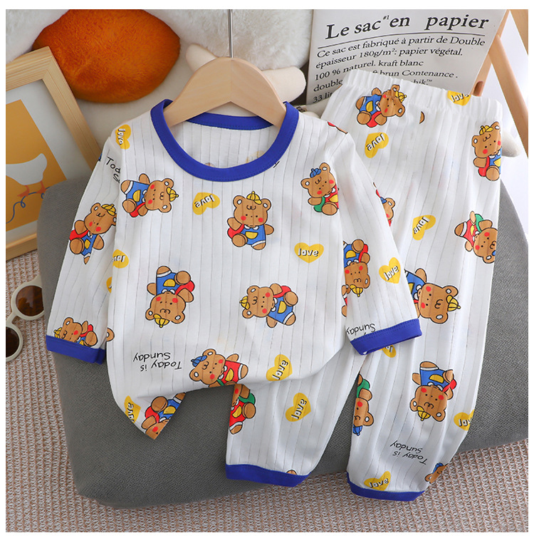 2024 여름 어린이 긴팔 바지 홈 의류 세트 면 속옷 아기의 얇은 잠옷 잠옷 에어컨 옷스토어 가기