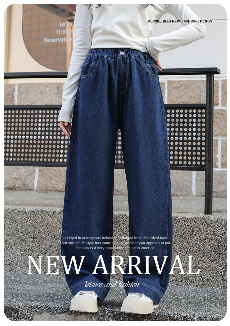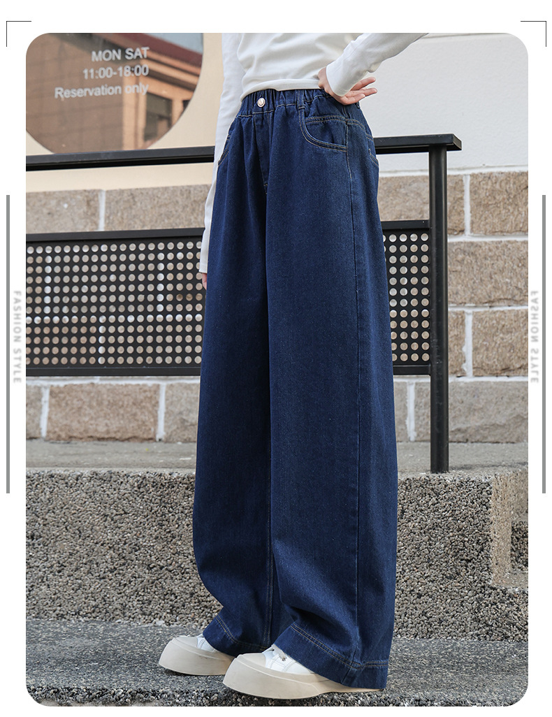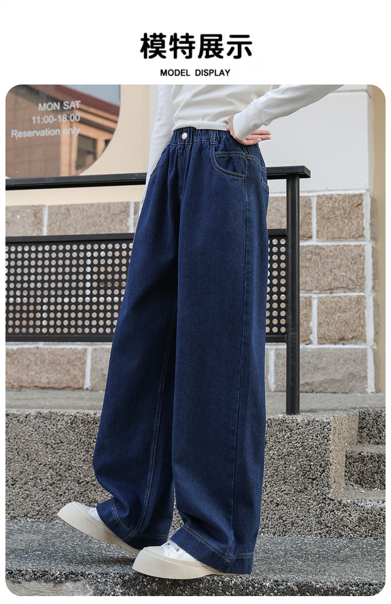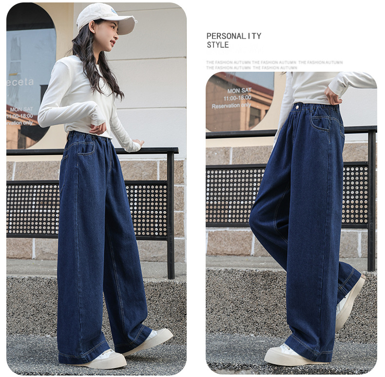 여자 청바지 2025 봄 가을 새 여아 캐주얼 스트레이트 다리 바지 학생 한국 느슨한 넓은 다리 바지스토어 가기