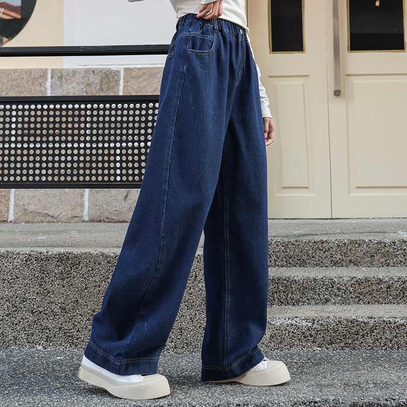 여자 청바지 2025 봄 가을 새 여아 캐주얼 스트레이트 다리 바지 학생 한국 느슨한 넓은 다리 바지
