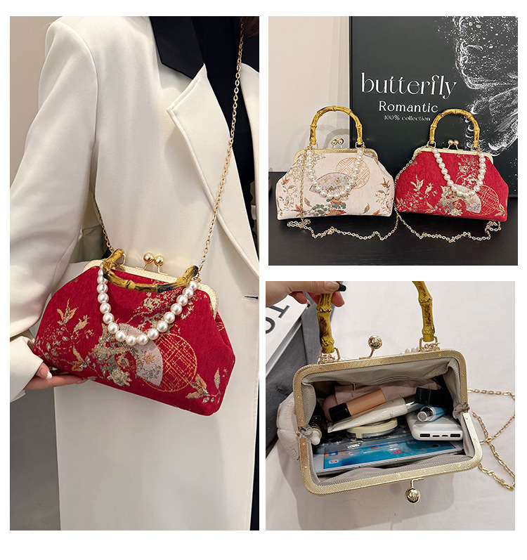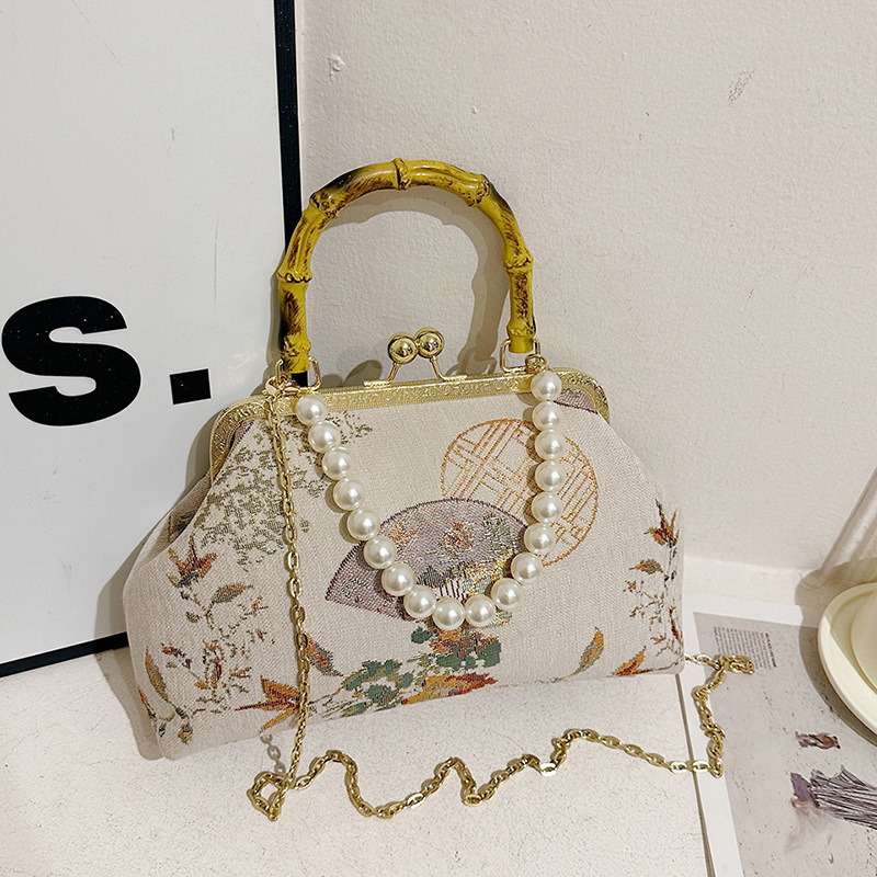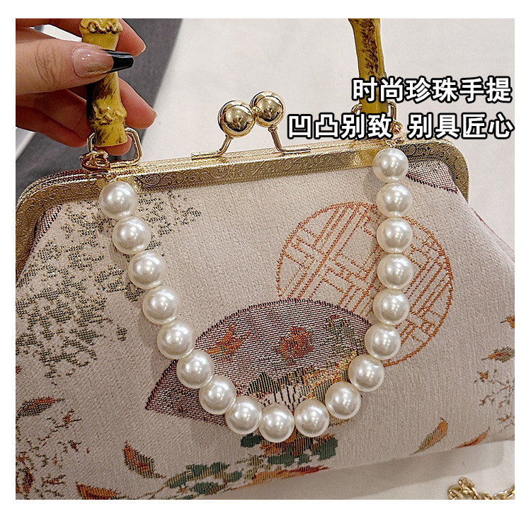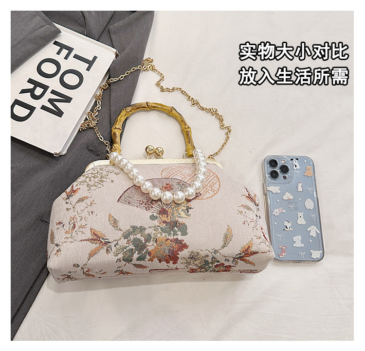 가방 여성용 진주 휴대용 샤넬 스타일 쉘 백 2024 새로운 자수 체인 어깨 클램프 크로스 바디 백