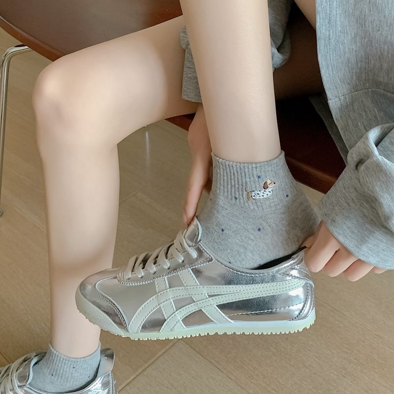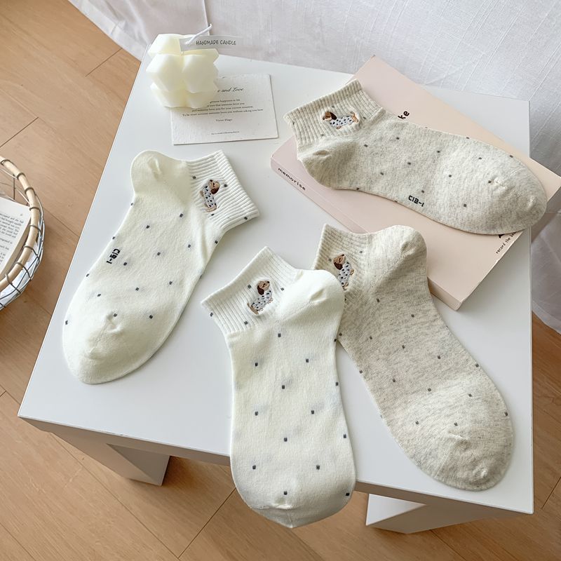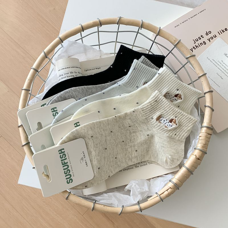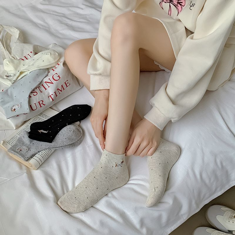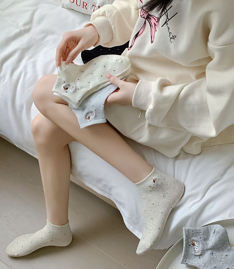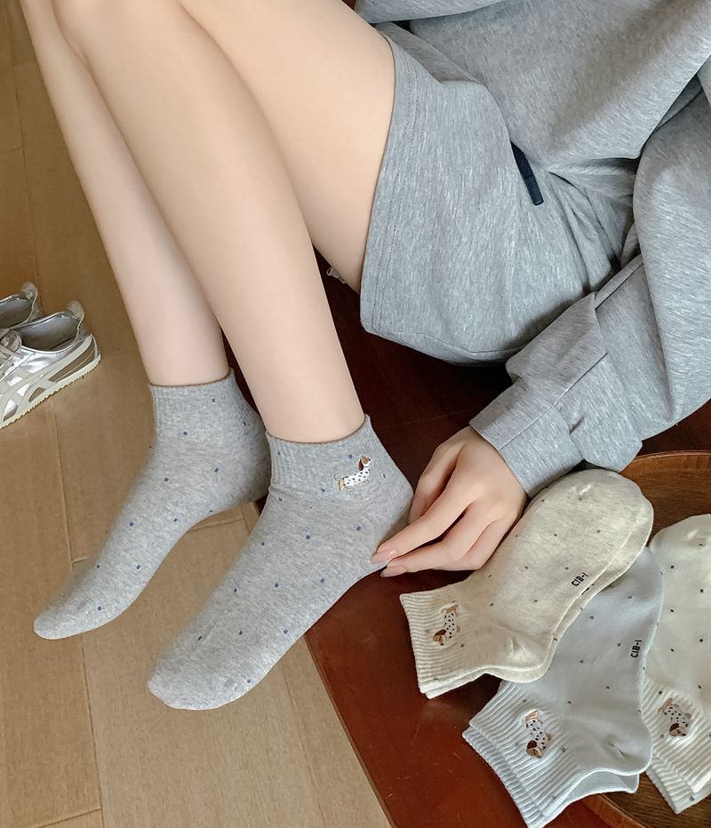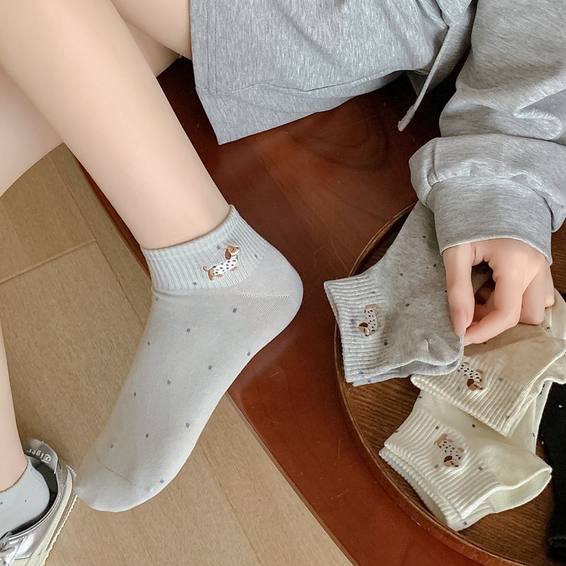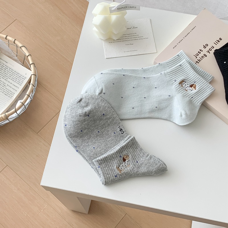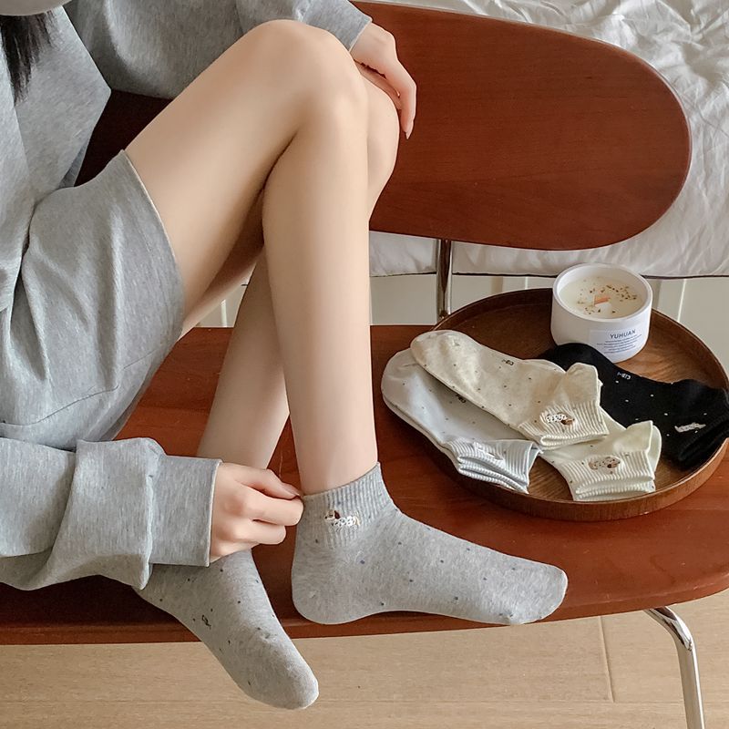 2025 봄과 여름 단색 귀여운 양말 한국 스타일 자수 면화 통기성 땀 짧은 양말 흡수 여성 올 매치 대학 스타일스토어 가기