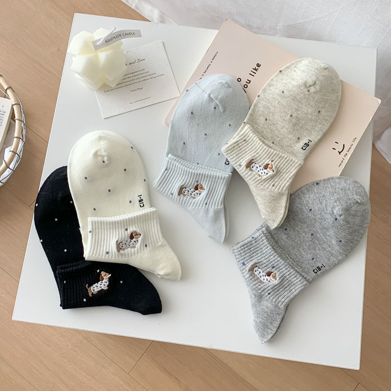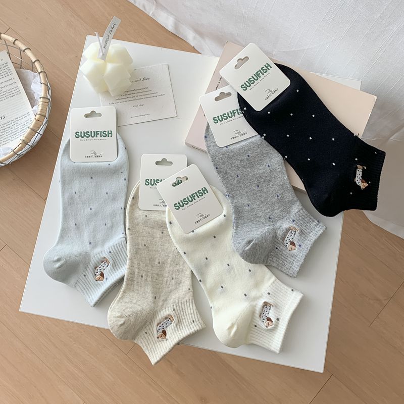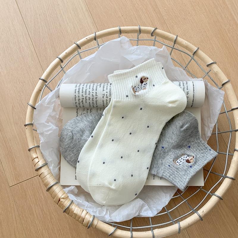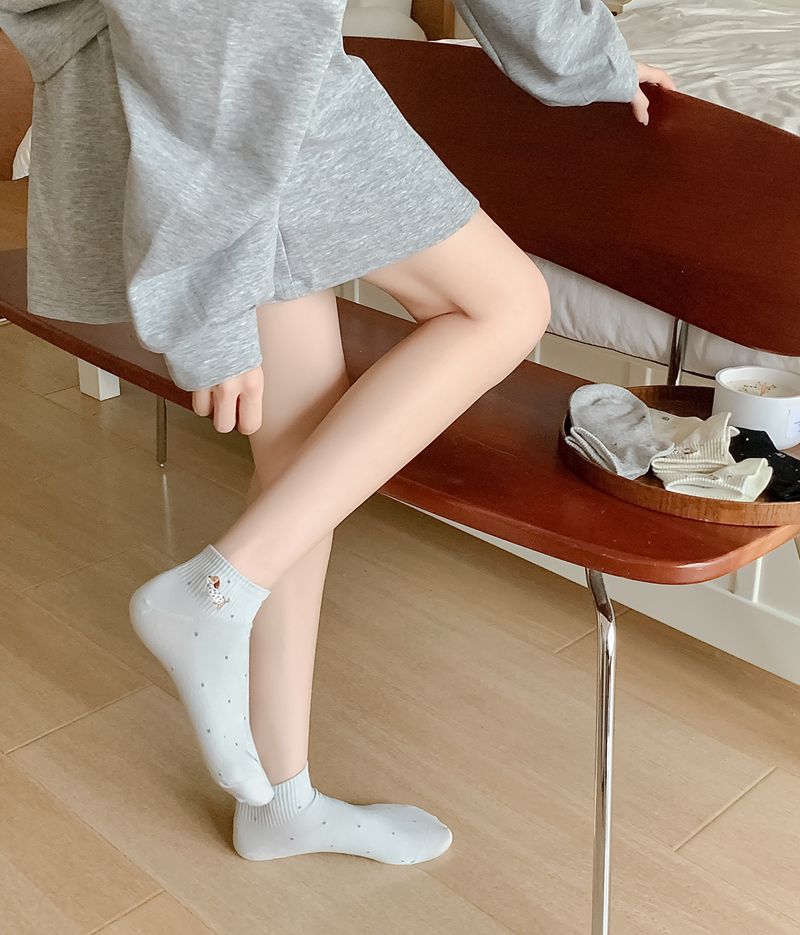 2025 봄과 여름 단색 귀여운 양말 한국 스타일 자수 면화 통기성 땀 짧은 양말 흡수 여성 올 매치 대학 스타일